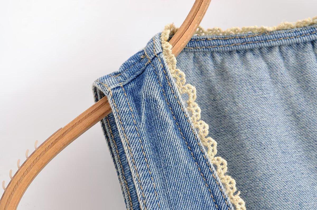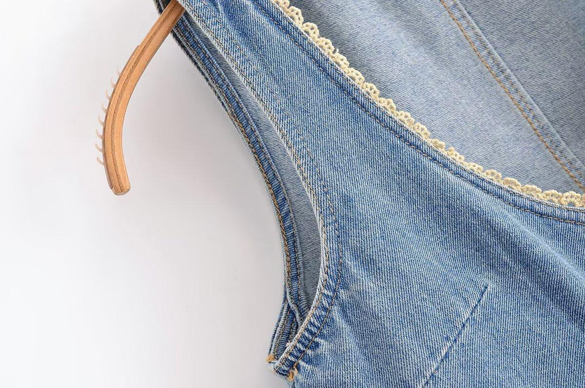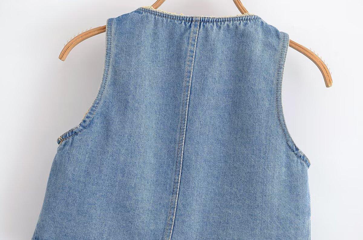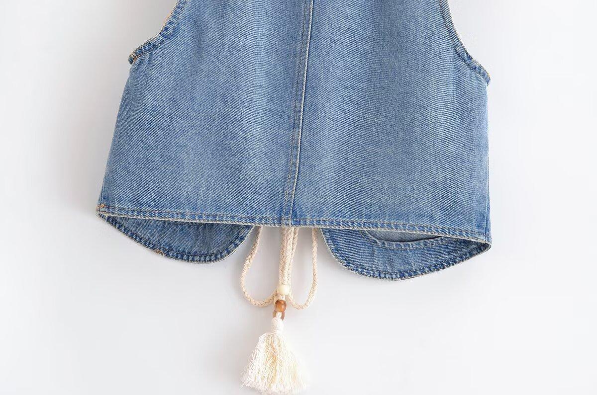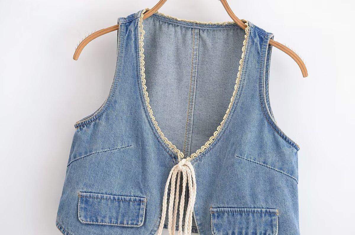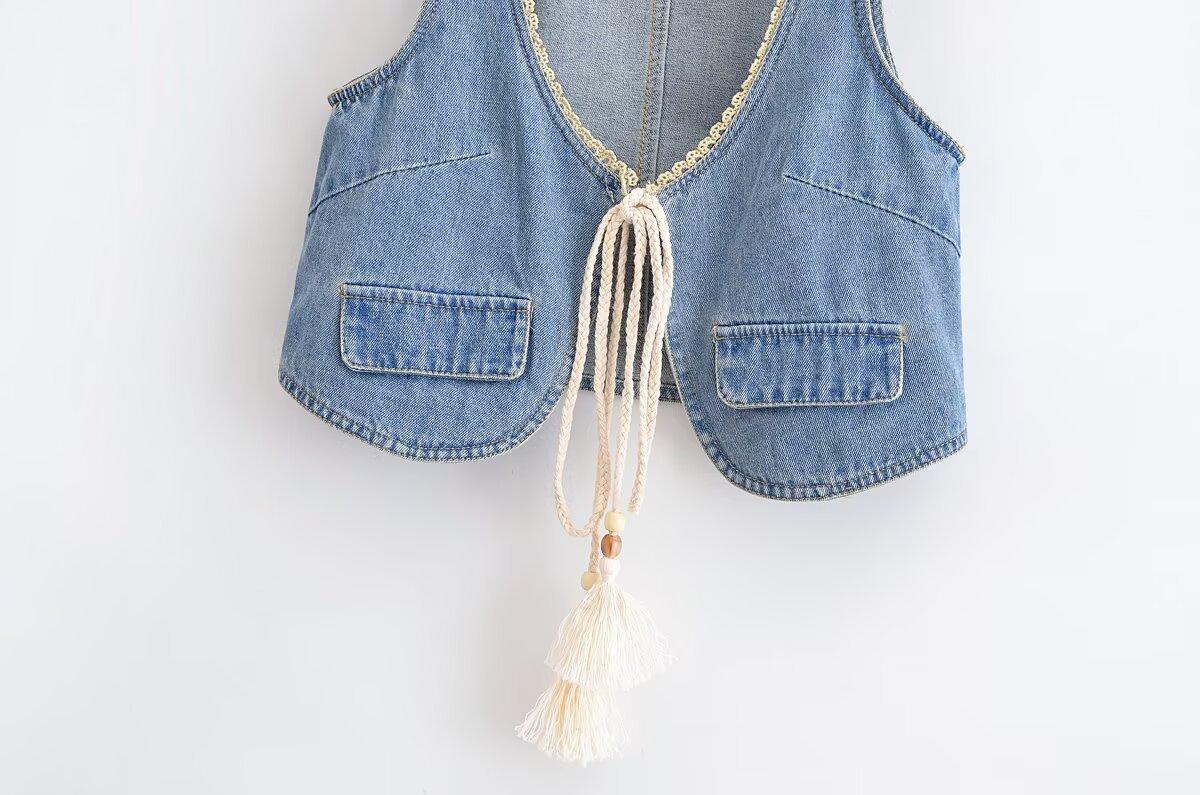 Comércio exterior transfronteiriço roupa feminina 2025 primavera e verão estilo europeu e americano renda borla com colete jaqueta jeans decorativo M225314