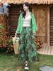 Saia Floral de Chiffon para Férias Feminina Verão Nova Retrô Elegante Slim Plissada Longa Cintura Alta Grande Roda