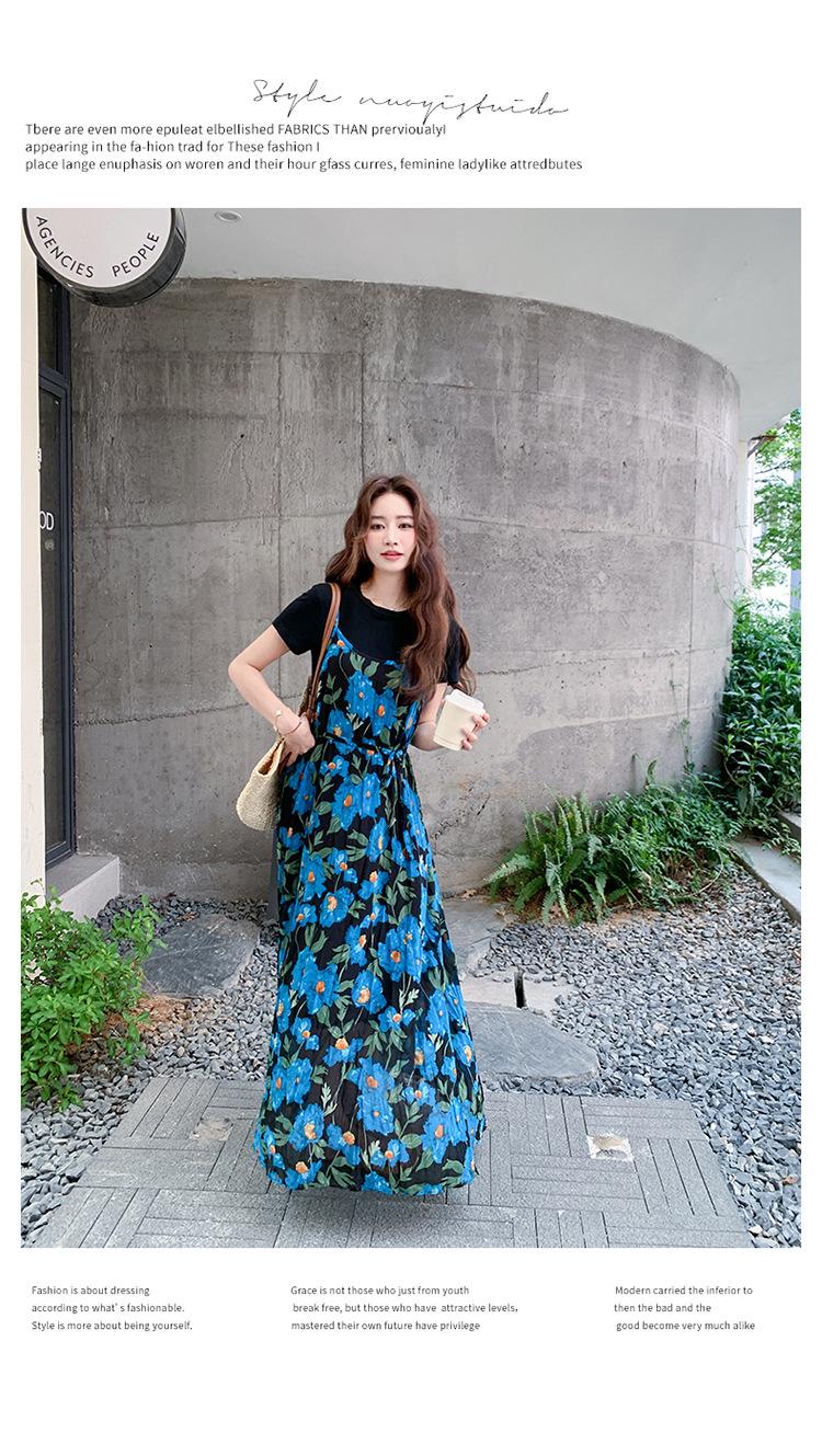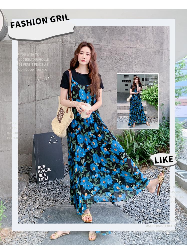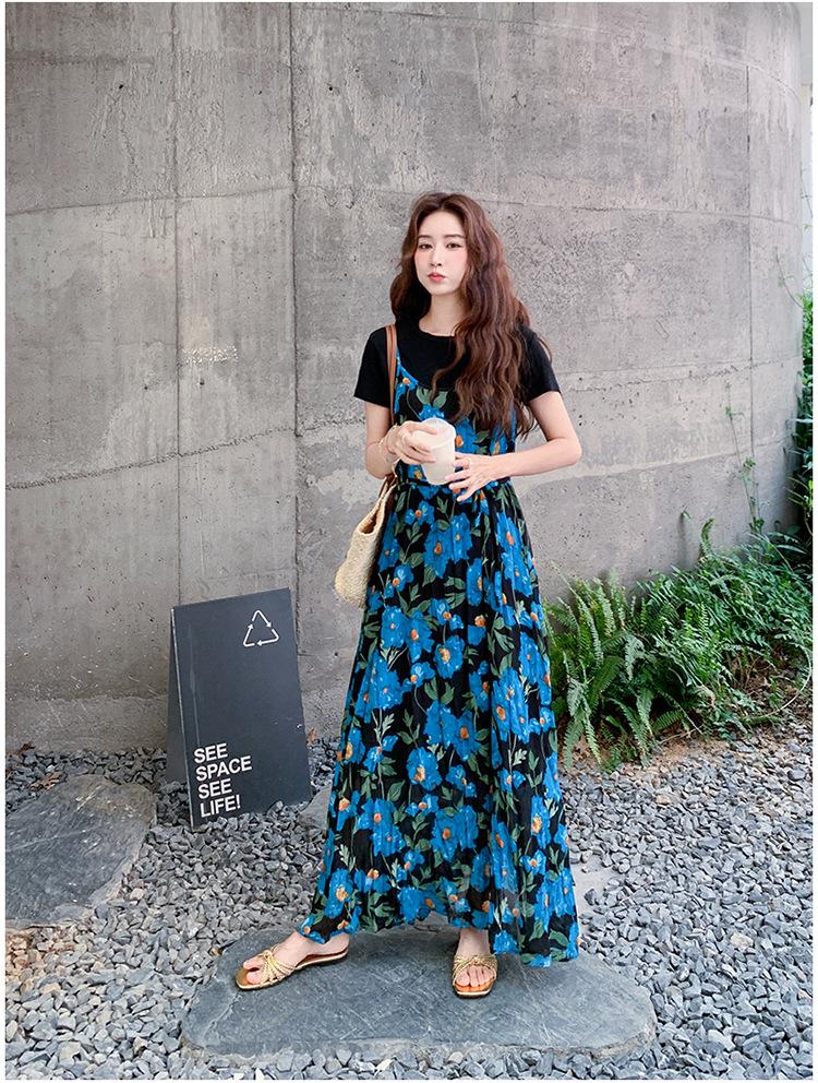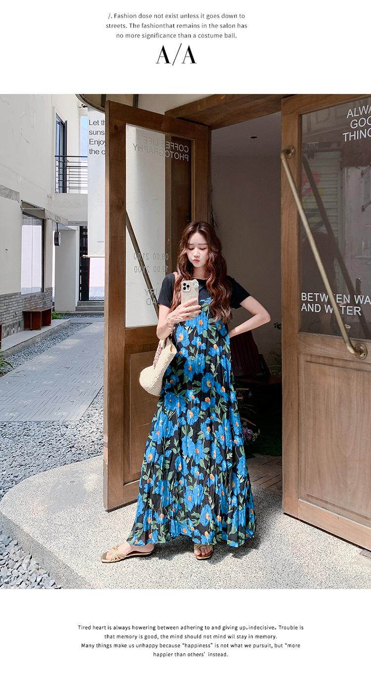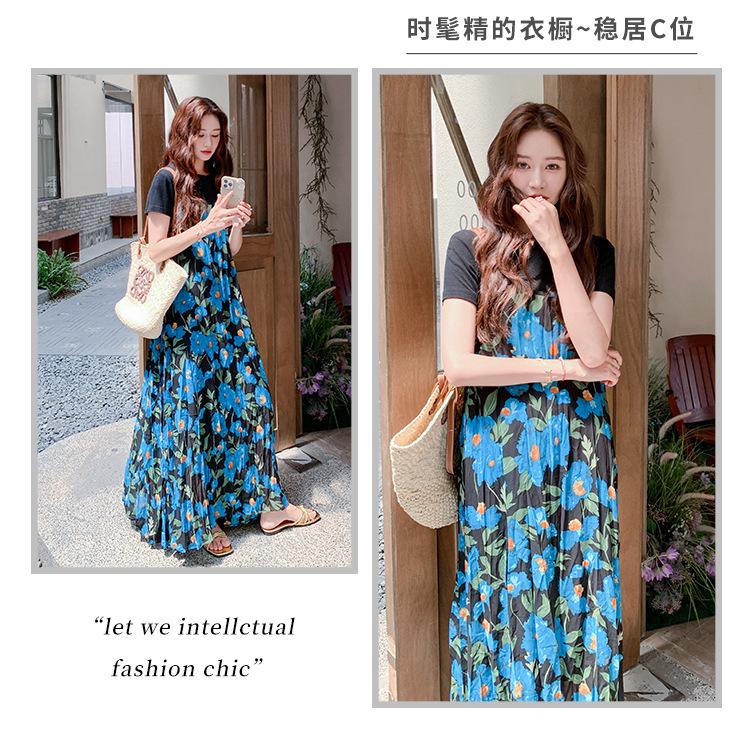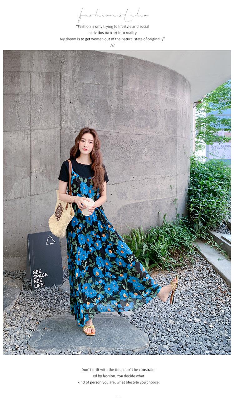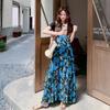 Conjunto Feminino de Duas Peças 2025 Novo Estilo Feriado Saia Floral de Suspensório Look Emagrecedor Vestido Super Bonito Comprimento Tornozelo Moderno