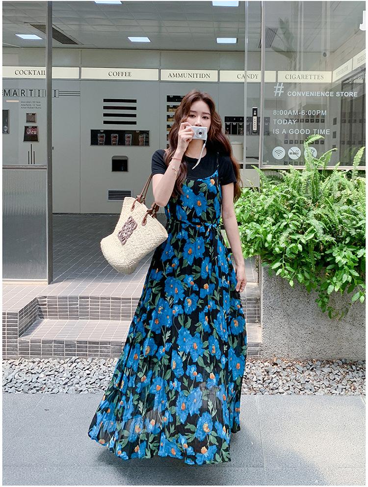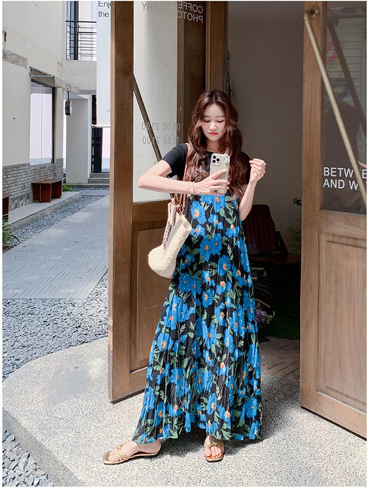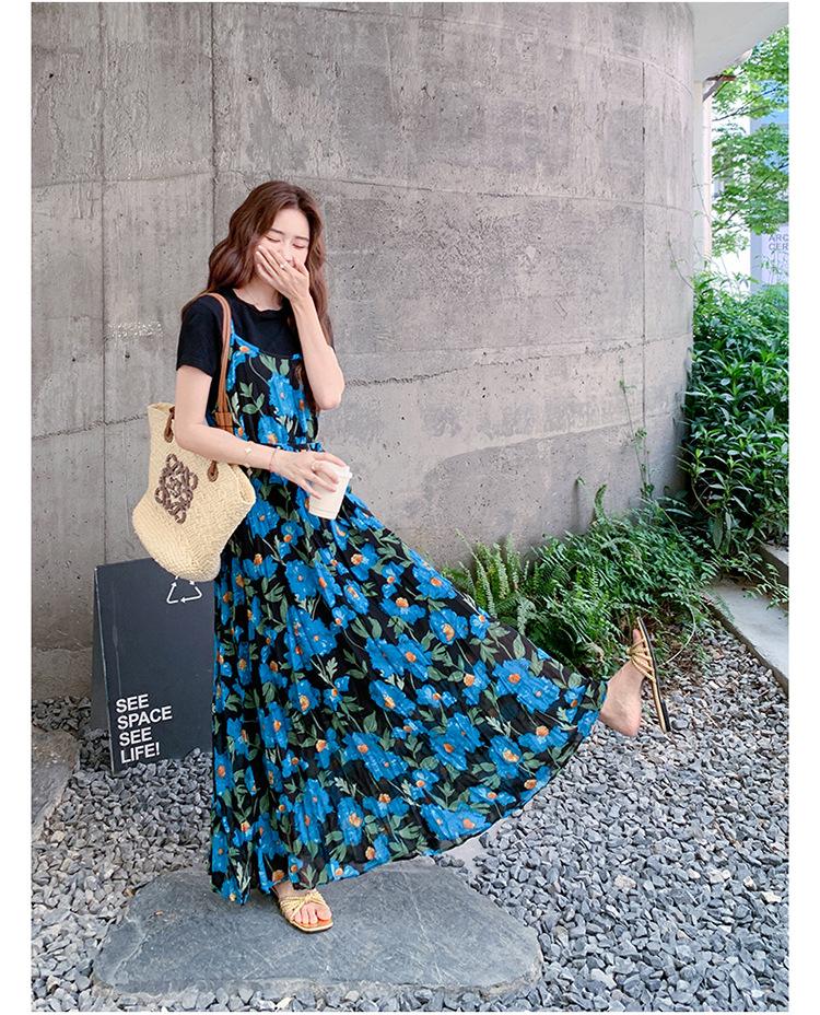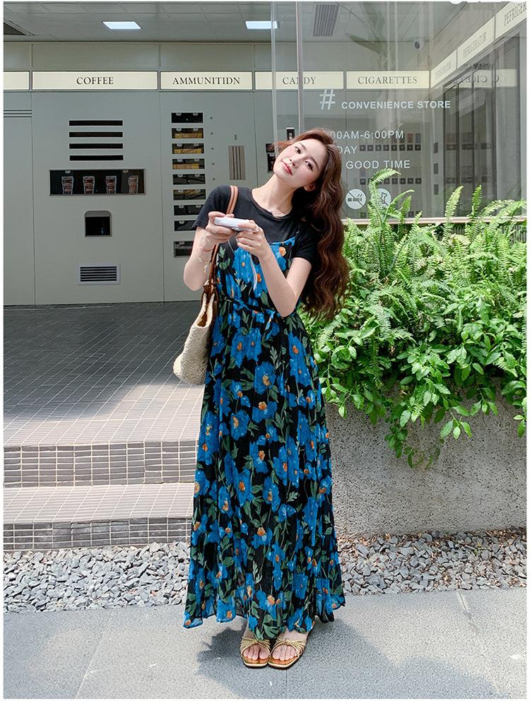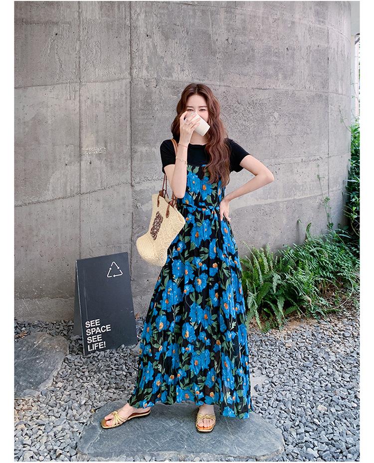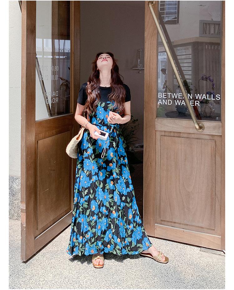 Conjunto Feminino de Duas Peças 2025 Novo Estilo Feriado Saia Floral de Suspensório Look Emagrecedor Vestido Super Bonito Comprimento Tornozelo Moderno