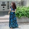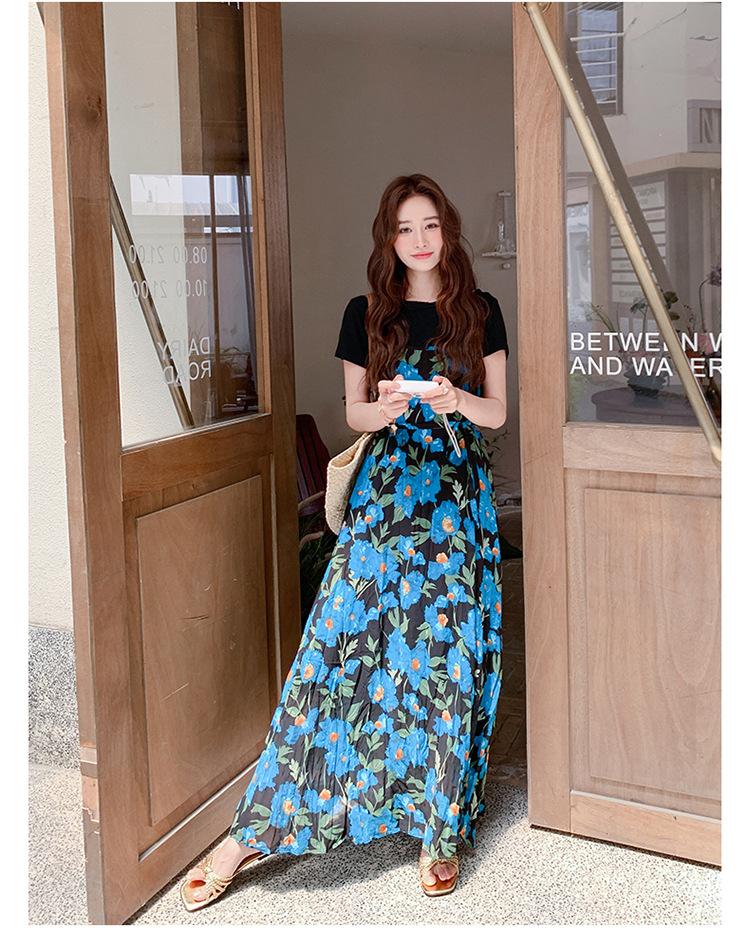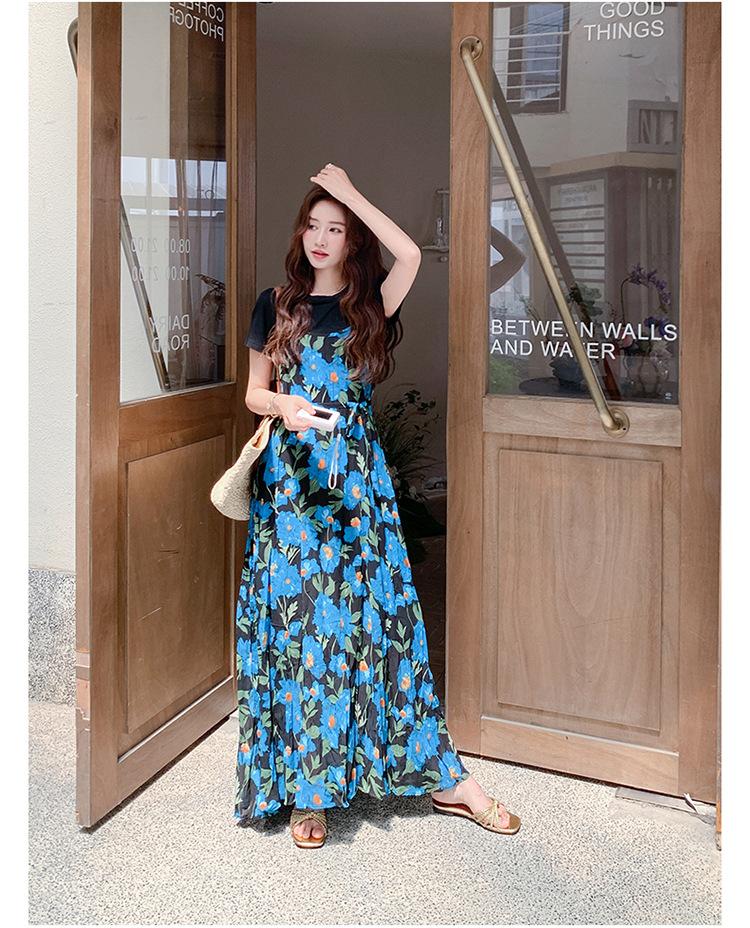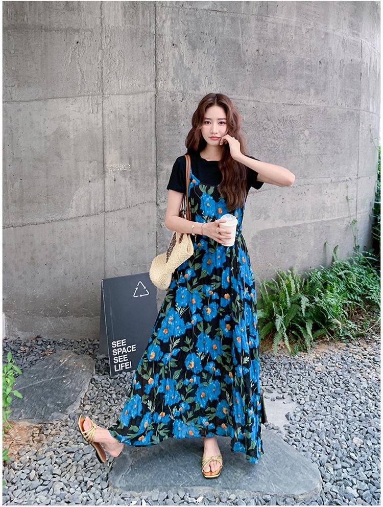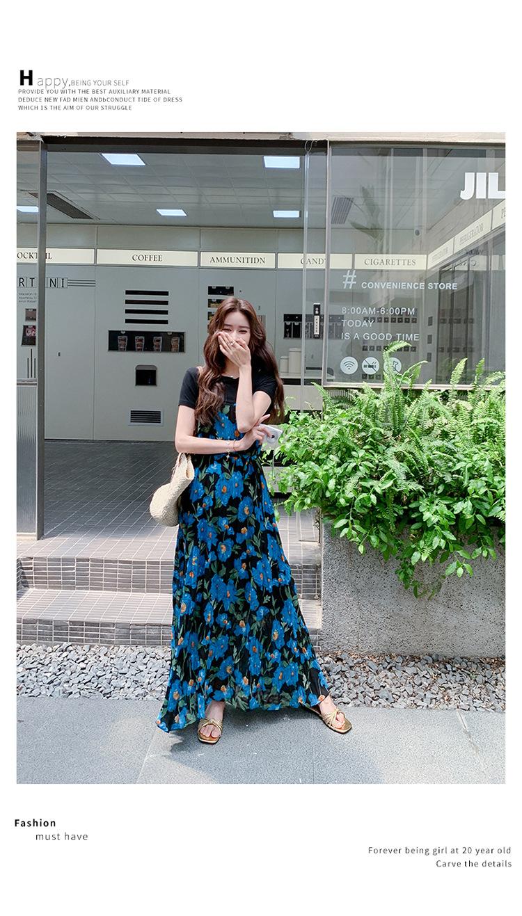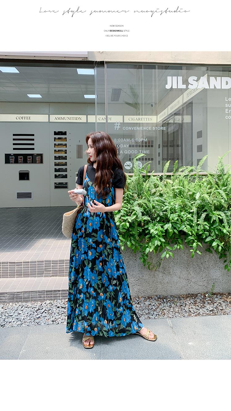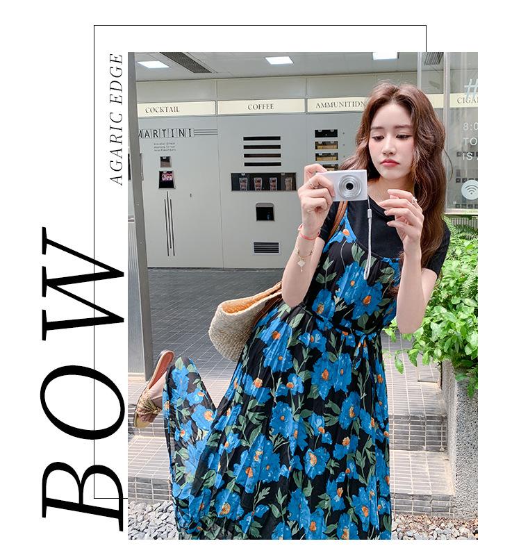Conjunto Feminino de Duas Peças 2025 Novo Estilo Feriado Saia Floral de Suspensório Look Emagrecedor Vestido Super Bonito Comprimento Tornozelo Moderno
