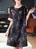 Vestido Elegante Estilo Nacional 2025 Estampado Verão Novo Estilo Chinês High-end Manga Curta Saia Reta