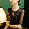 Camisa Elegante e Versátil de Verão Nova com Gola Alta para Mães, Blusa Moderna com Manga Média e Emenda, Camiseta Modeladora