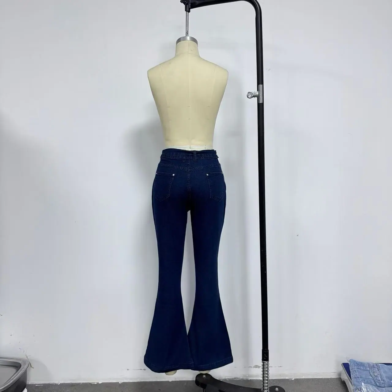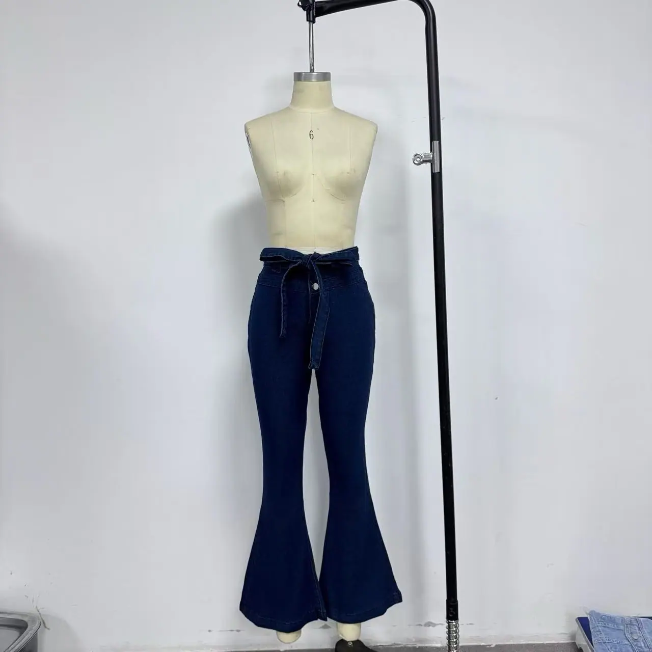 Comércio exterior europeu e americano, fornecimento transfronteiriço de jeans femininos elásticos, slim-fit, com cinto, micro-pull.