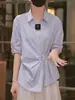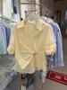 Camisa de Manga Curta Irregular com Senso de Design Feminina 2025 Verão Novo Estilo Fashionável Versátil Redutora de Idade Casual Emagrecedora