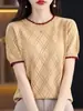 Tops de Verão Femininos Tricô Vazado Manga Curta Algodão Camisetas Regata Gola Redonda Color Block Crochê Atacado