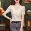 Camiseta Manga Curta Decote V Ombro Direito Verão 2025 Nova Algodão Puro Modelagem Slim Básica Nova Blusa