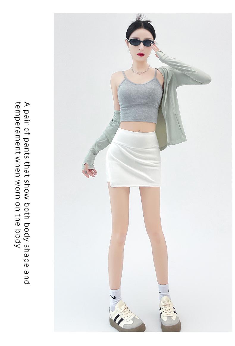 Saia Esportiva Cinza com Fenda Lateral Feminina 2025 Verão Nova Linha A Saia Slim Quadril Menina Quente Yoga Culotes