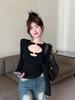 Outono 2024 Design Sexy de Camiseta de Manga Comprida Vazada Estilo Desejo Puro Gola Redonda Ajustada Emagrecimento Spice Girls Top Nicho Ins