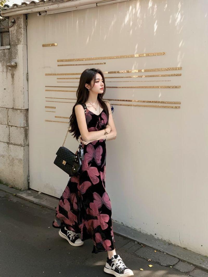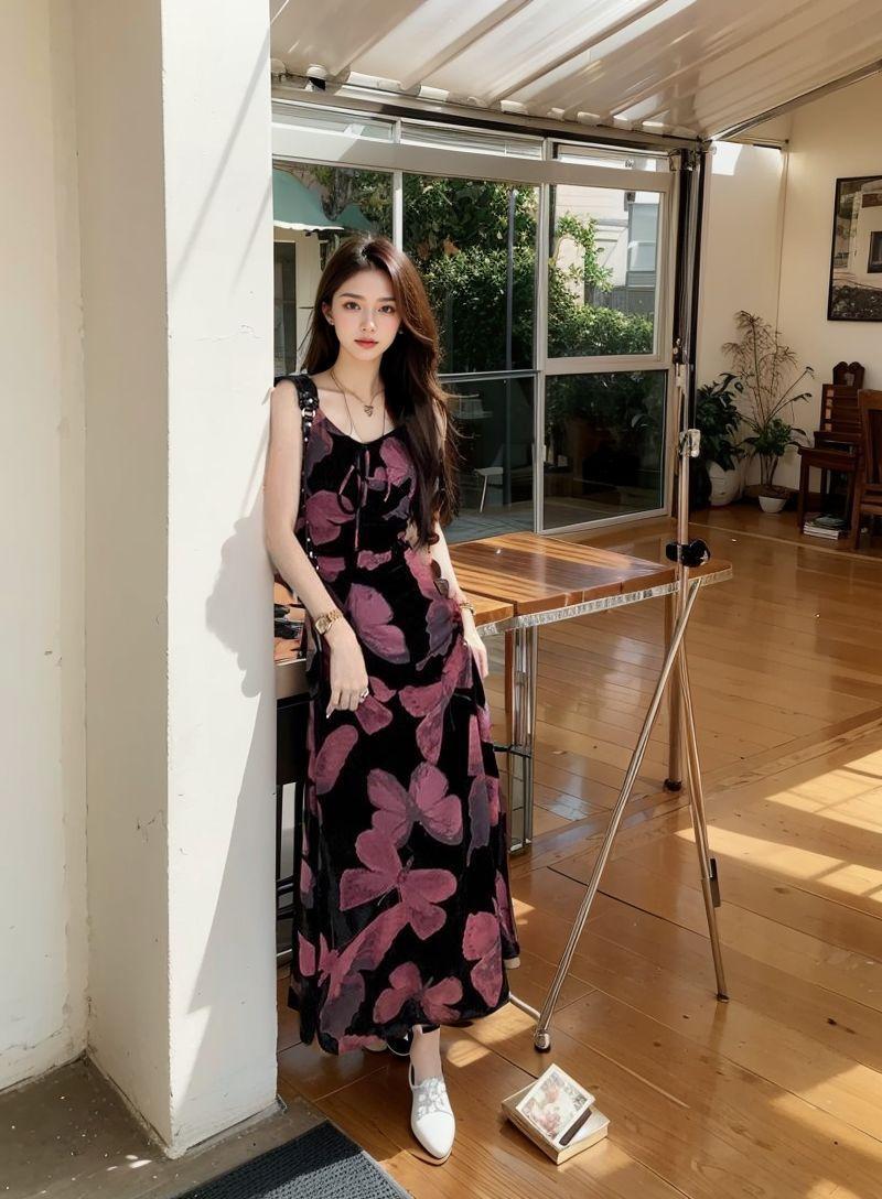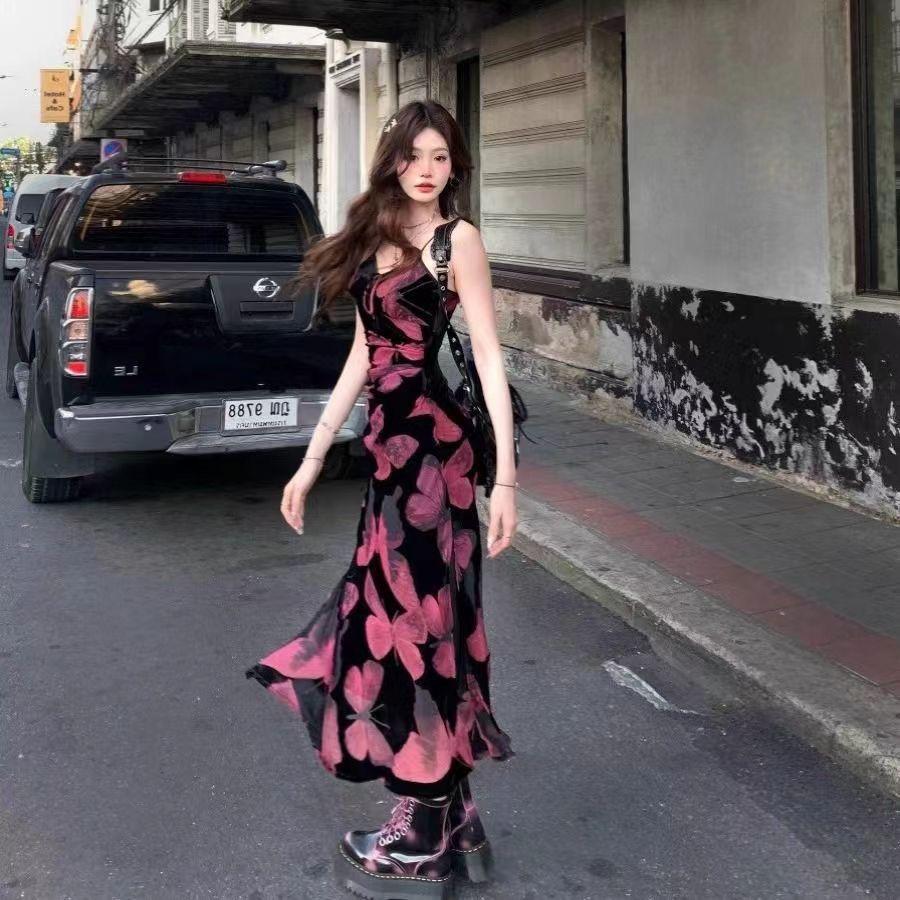 Vestido Vintage de Alças Irregulares Verão Estilo Francês Plus Size Design Único Floral Sexy Elegante Vestido Longo