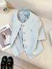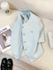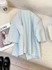 Casaco de Tailleur Azul de Manga Curta Pequeno Perfumado para Mulheres Verão Fino 2025 Novo Super Quente Elegante High-End Lindo Top