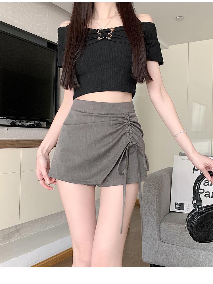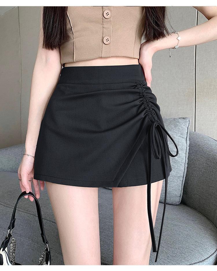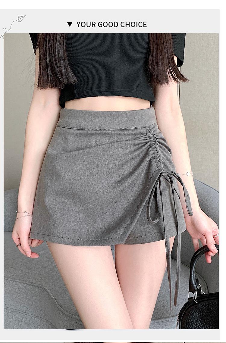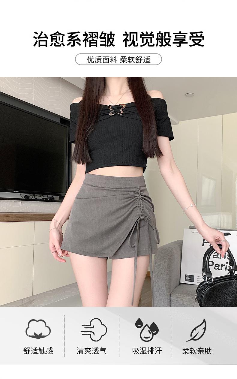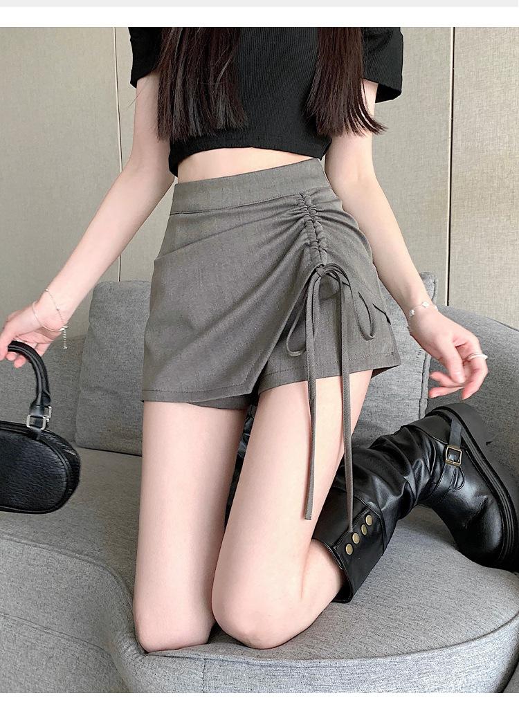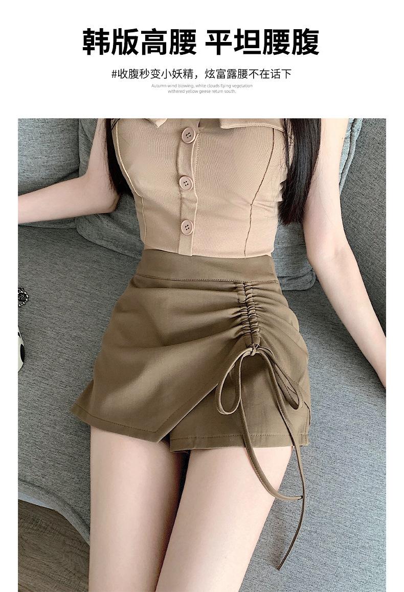 Foto real tecido de terno de primavera e verão caimento cordão Uma garota gostosa figura ultracurta cintura alta shorts calça saia