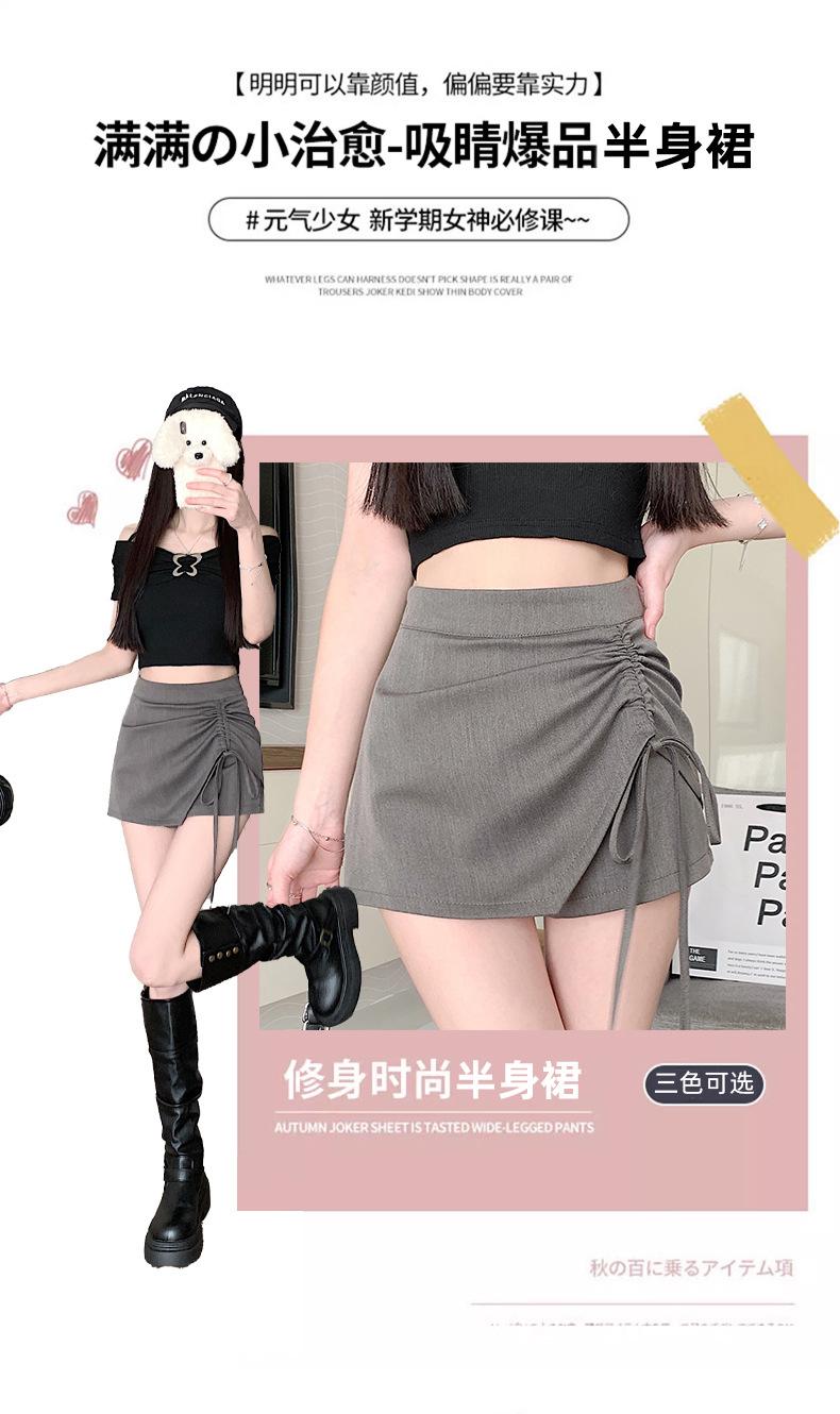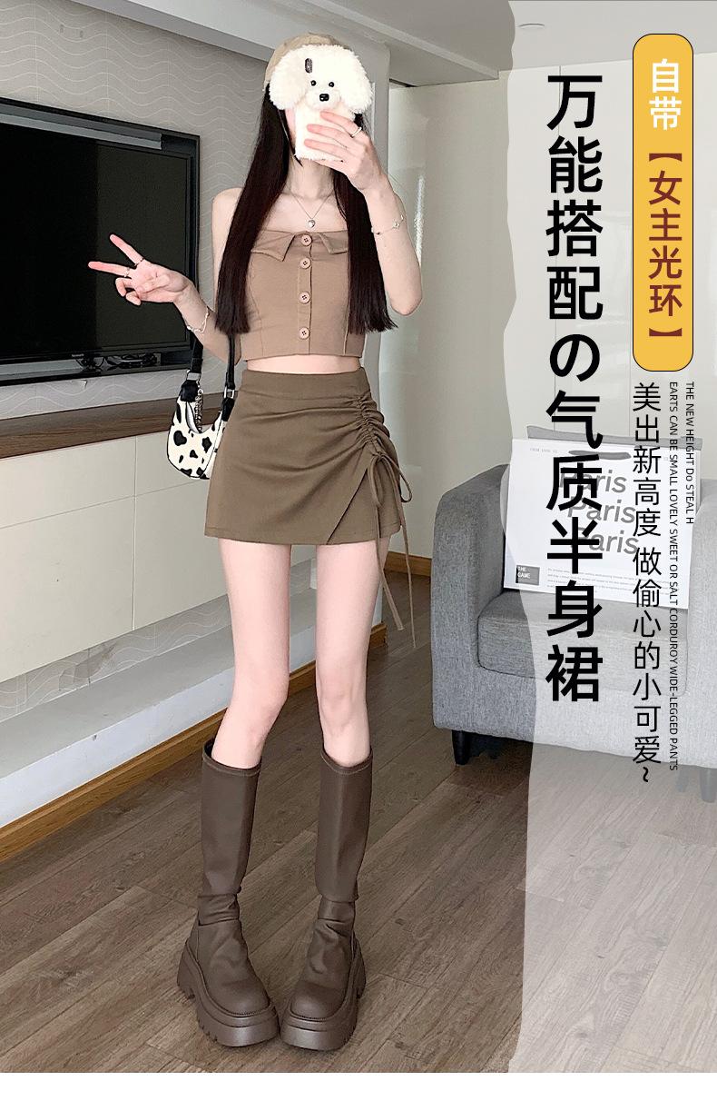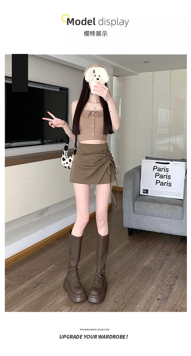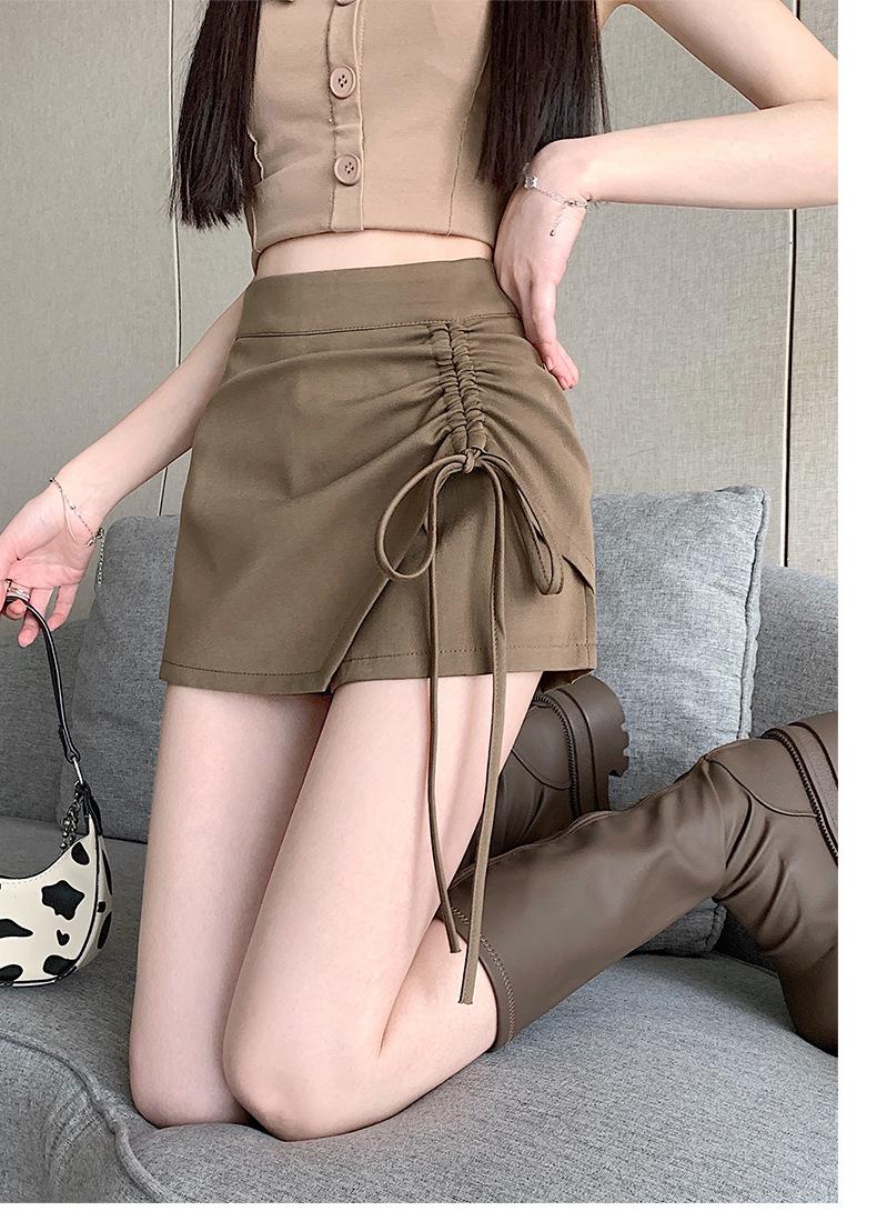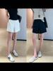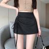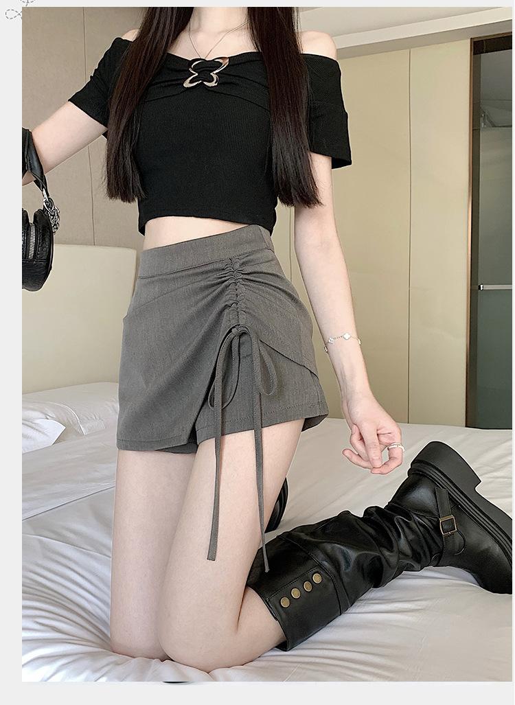 Foto real tecido de terno de primavera e verão caimento cordão Uma garota gostosa figura ultracurta cintura alta shorts calça saia