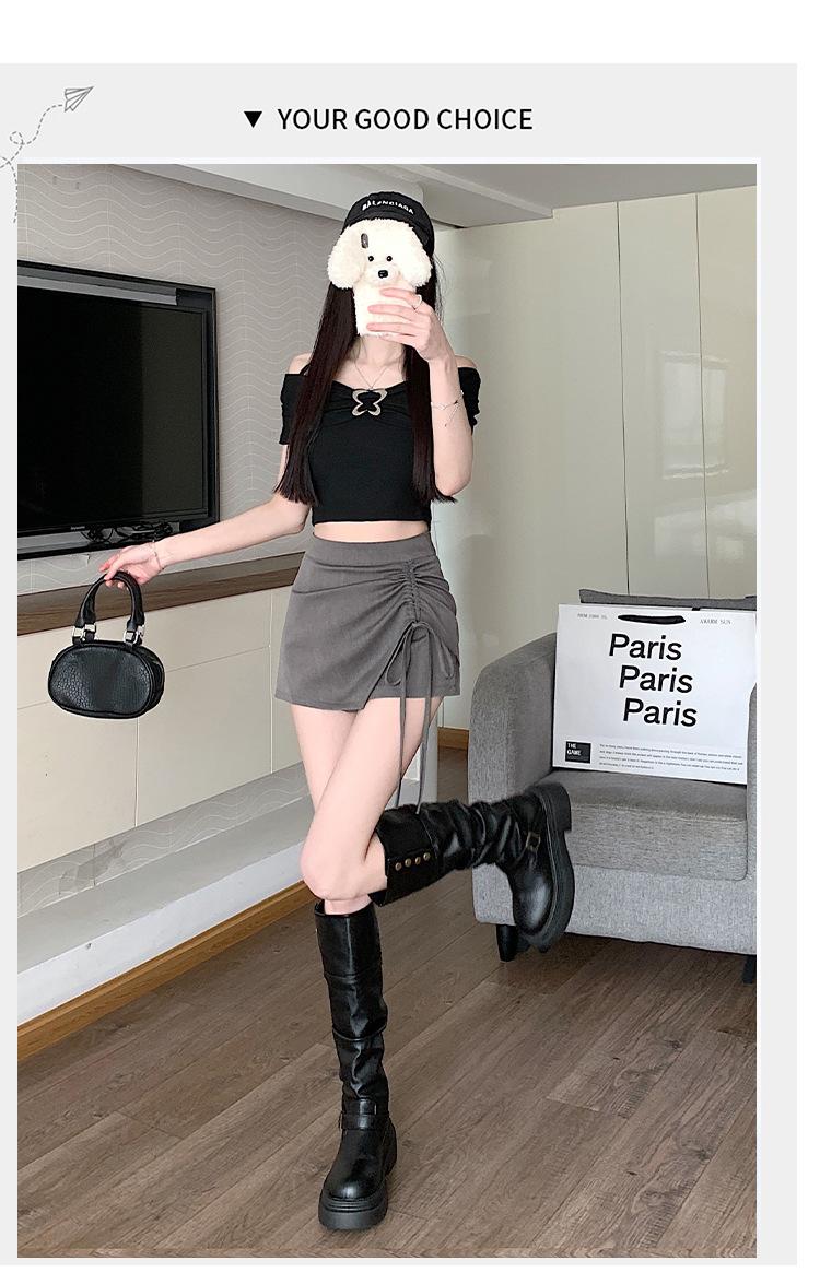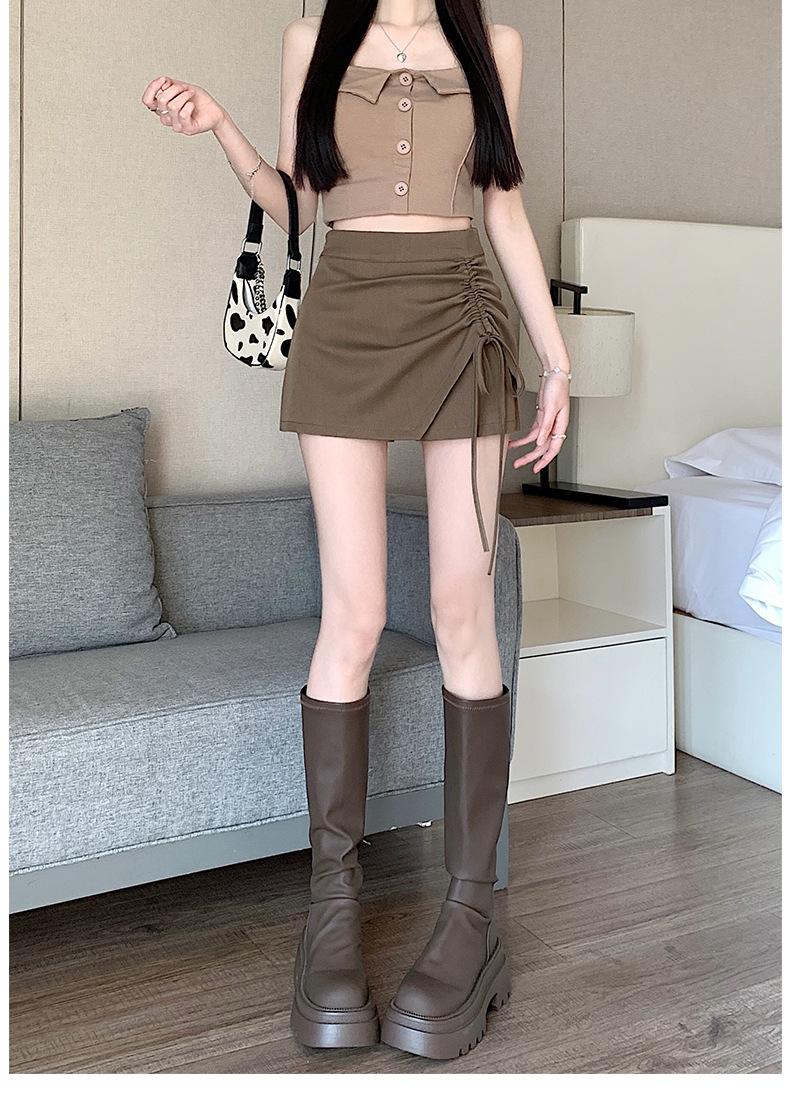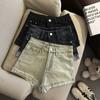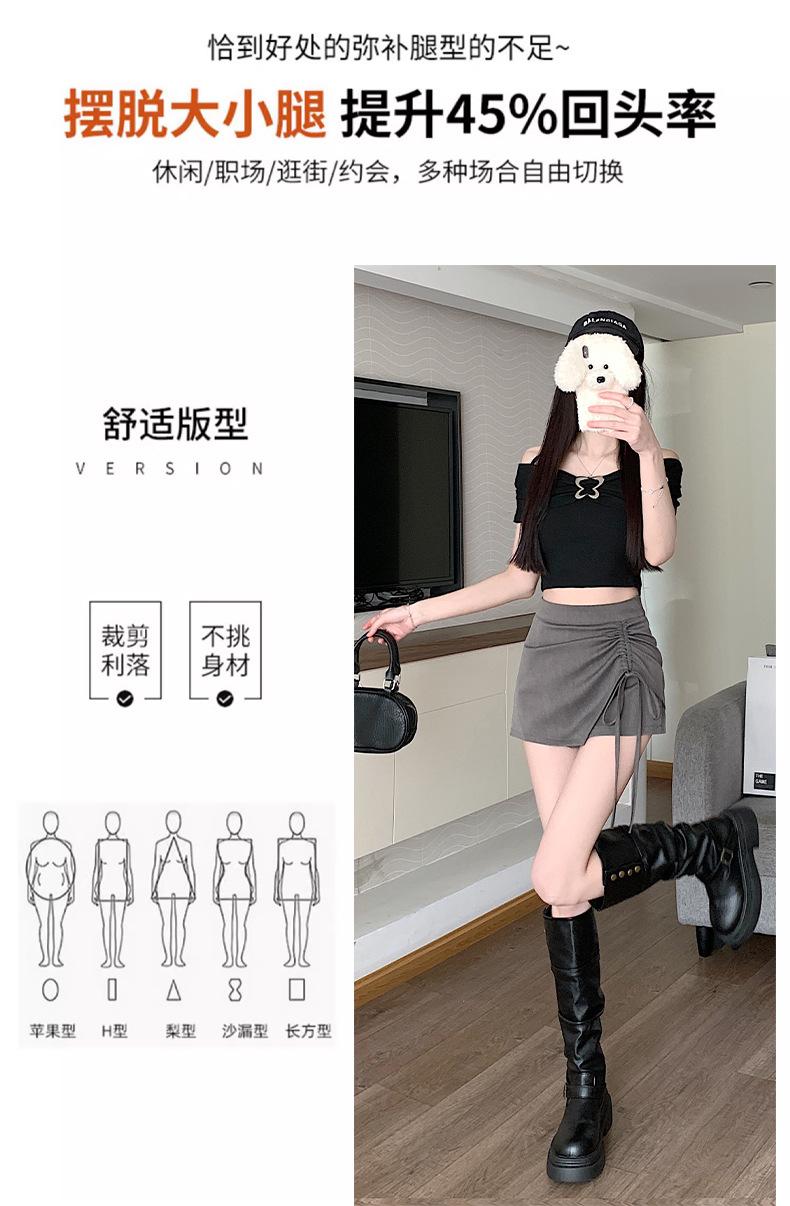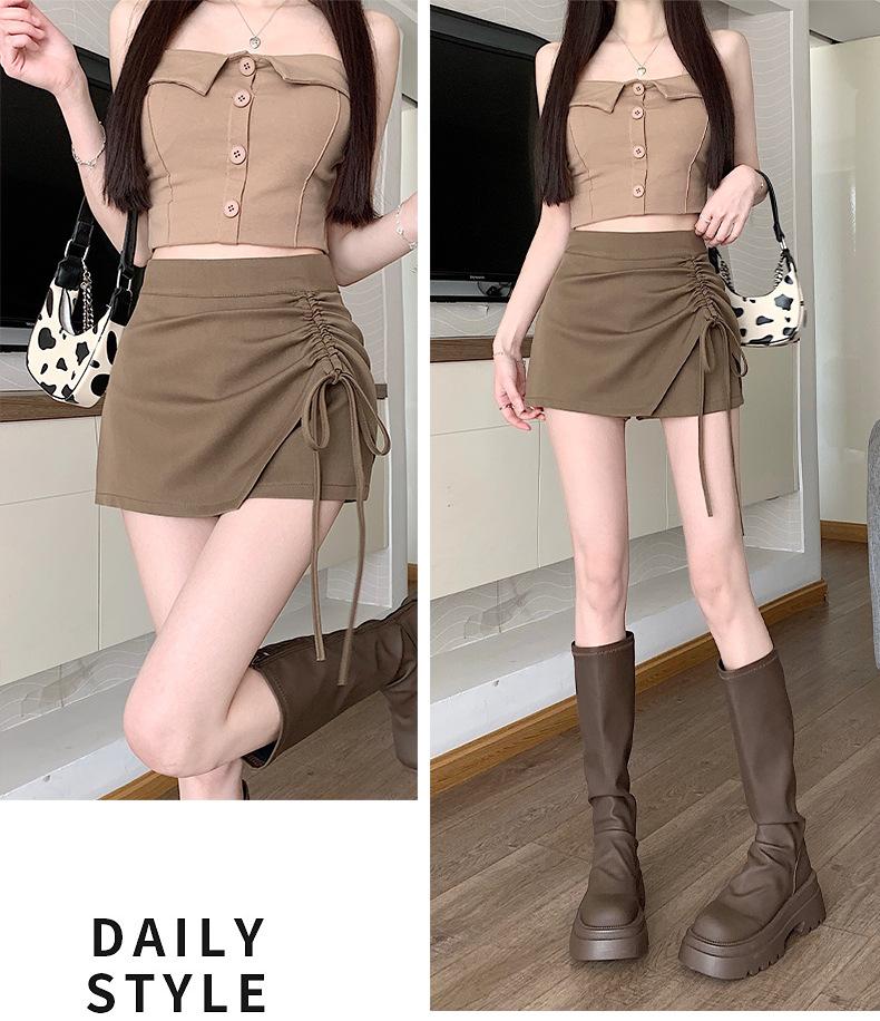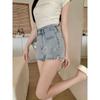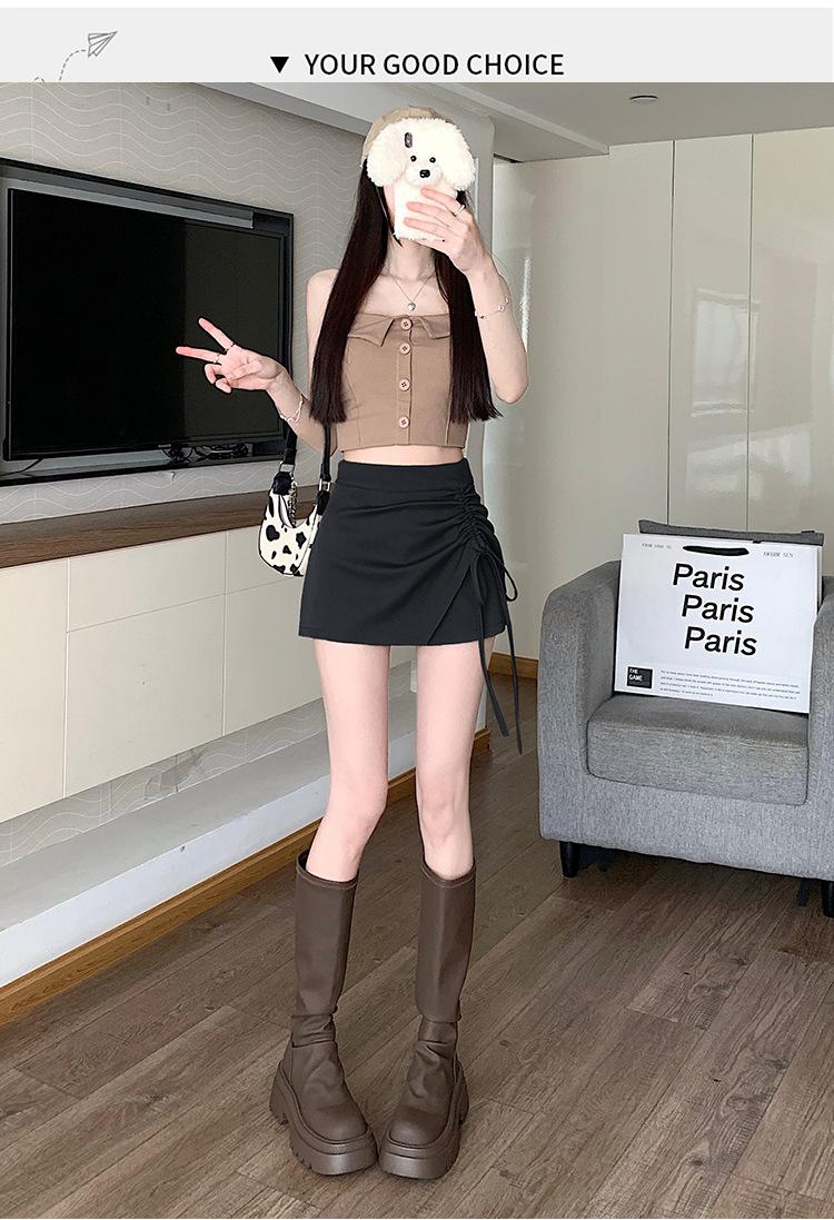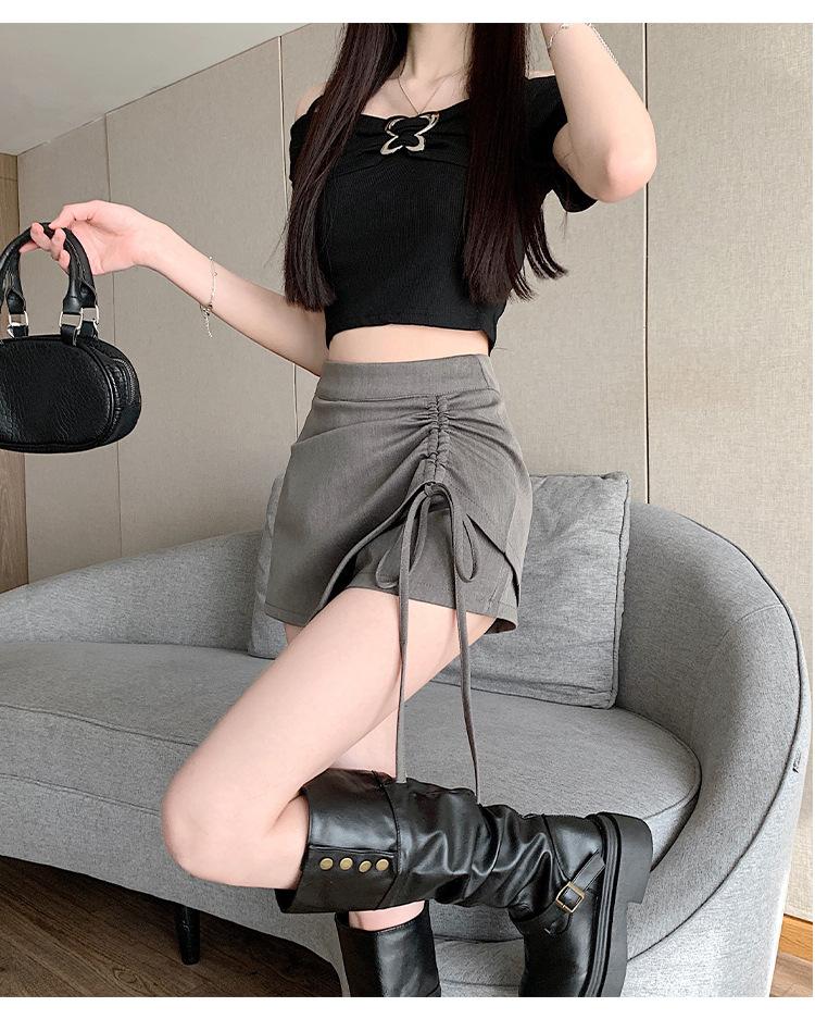 Foto real tecido de terno de primavera e verão caimento cordão Uma garota gostosa figura ultracurta cintura alta shorts calça saia