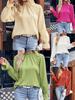 Primavera e Verão Europeu e Americano Transfronteiriço Comércio Exterior Roupas Femininas Cor Sólida Gola Folha de Lótus Camisa Solta de Chiffon Blusa Top Francês Feminina Manga Longa