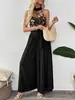 Amazon 2025 Exportação Europeia e Americana Verão Novo Estilo Gola Halter Sem Mangas Renda Bordada Costura Macacão Pantacourt para Mulheres