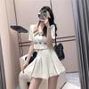 Verão Novo Estilo Chanel Estilo terno Feminino Manga Curta Estilo Francês Bordado de Renda Estilo Lady Feminino Terno Saia Branco