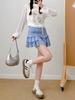 Saia de Bolo Xadrez Retrô para Mulheres Verão Novo Nicho Puro Luxo Cintura Alta Linha A Emagrecimento Aparência Saia Fofa