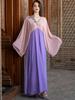 Vestido Elegante de Manga Longa Contrastante Rosa e Roxo com Bordado Floral e Miçangas de Arroz Decoradas à Mão Robe Elegante