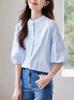 Camisa Vintage de Manga Curta com Manga Lanterna para Mulheres Verão 2025 Elegante Fashionável Versátil Top Tendência