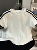 2025 Nova Camiseta Popular de Verão de Algodão Puro de Manga Curta para Mulheres Marca Trendy Ins Chique de Alta Qualidade Top de Meia Manga com Três Listras