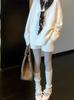 Suéter Gola Redonda 2025 Feminino Inverno Novo Conjunto de Duas Peças Feminino Solto Estilo Preguiçoso Top de Tricô Conjunto de Shorts Feminino