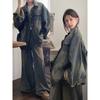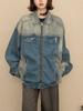 Jaqueta Jeans Estilo Coreano Retrô Desgastada para Mulheres Início do Outono 2023 Nova Jaqueta Solta Casual Elegante Versátil Tendência Ins