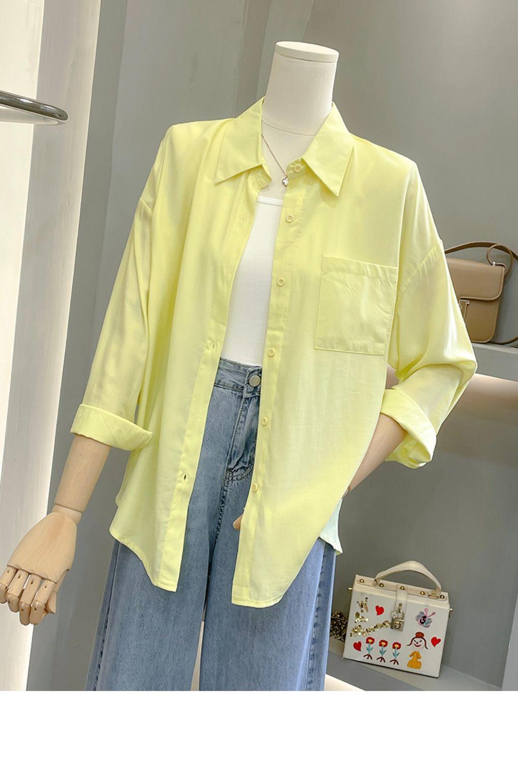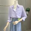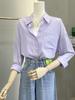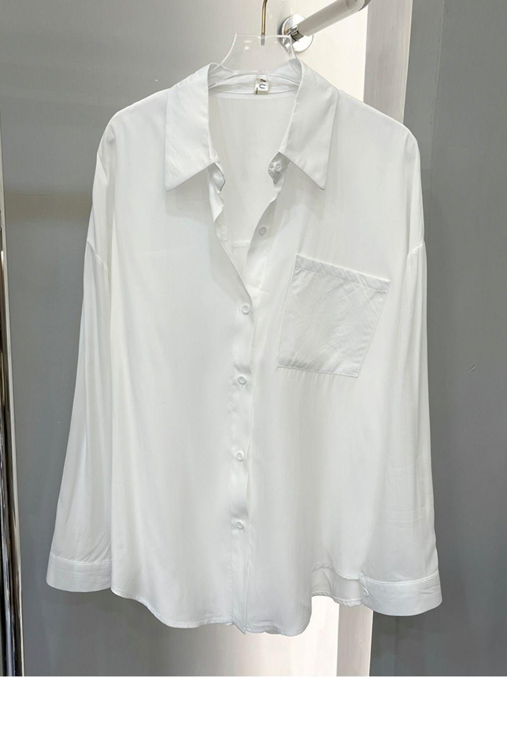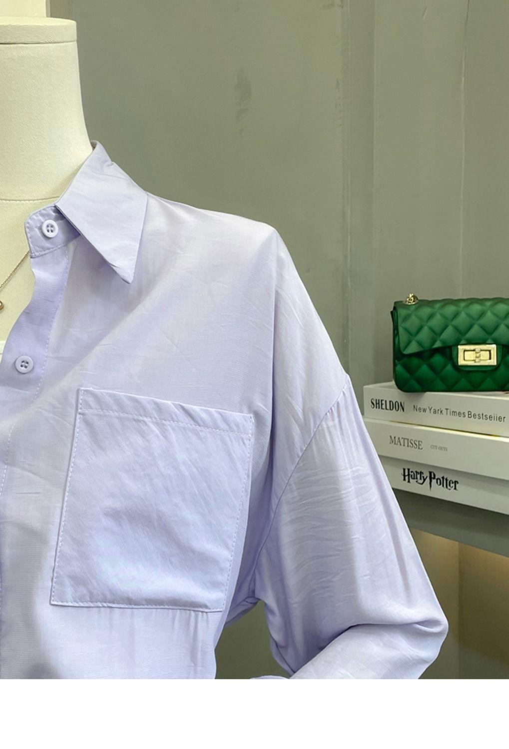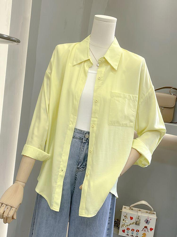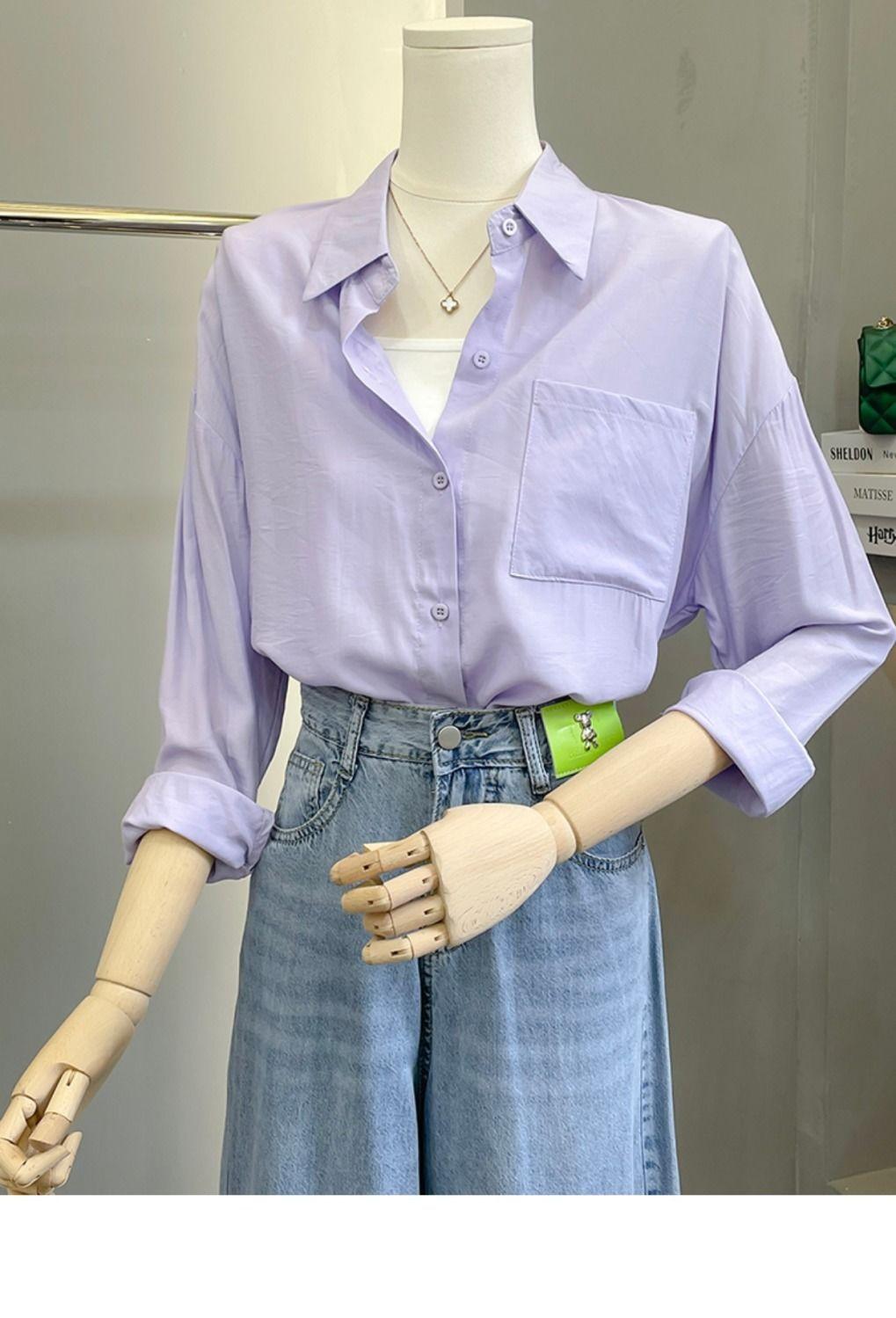 Camisas de Cor Sólida para Mulheres para Primavera e Outono, Jaquetas Soltas de Manga Comprida Estilo Hong Kong, Camisas de Nicho em Camadas, Camisas de Celebridade da Internet com Temperamento Elegante