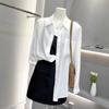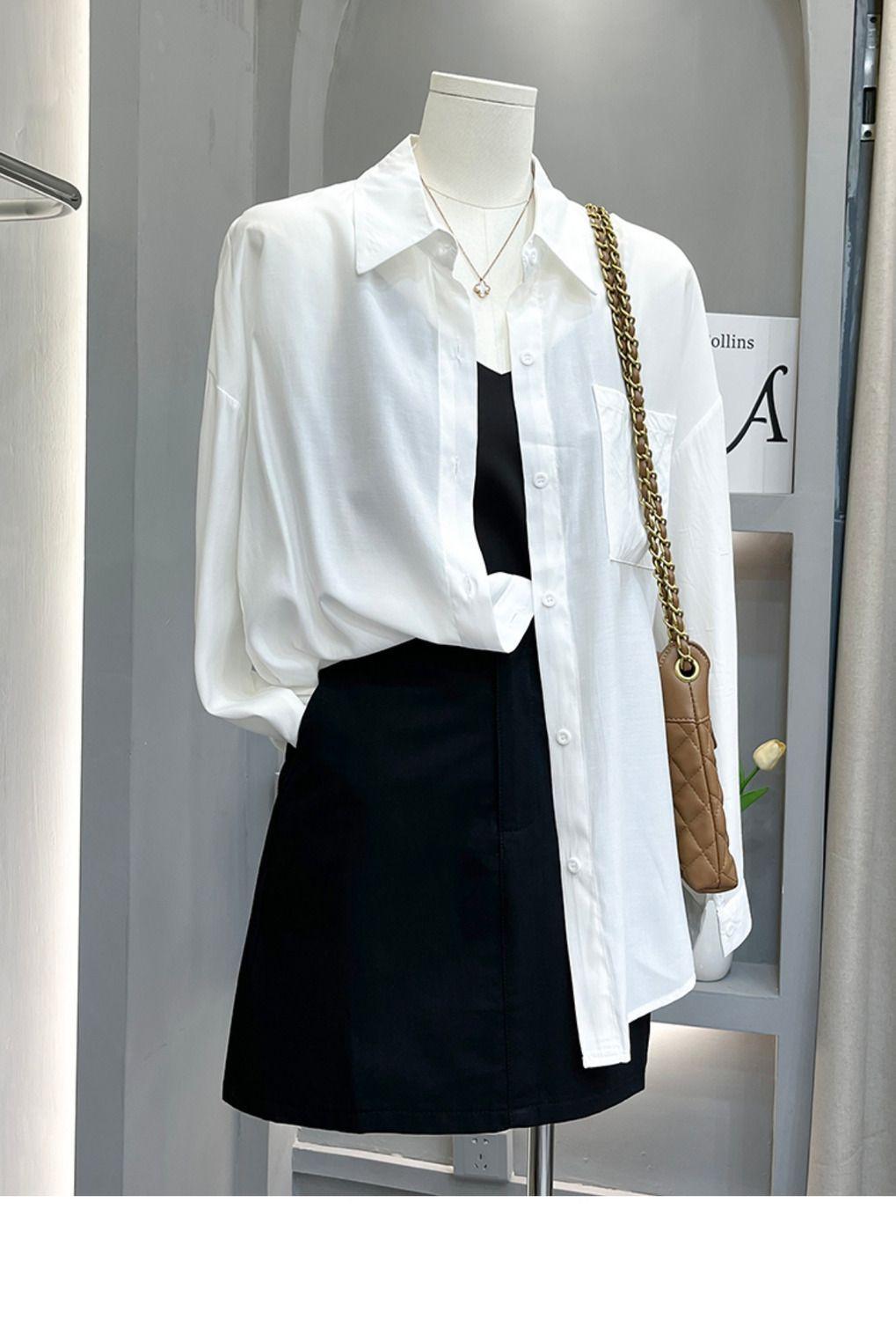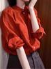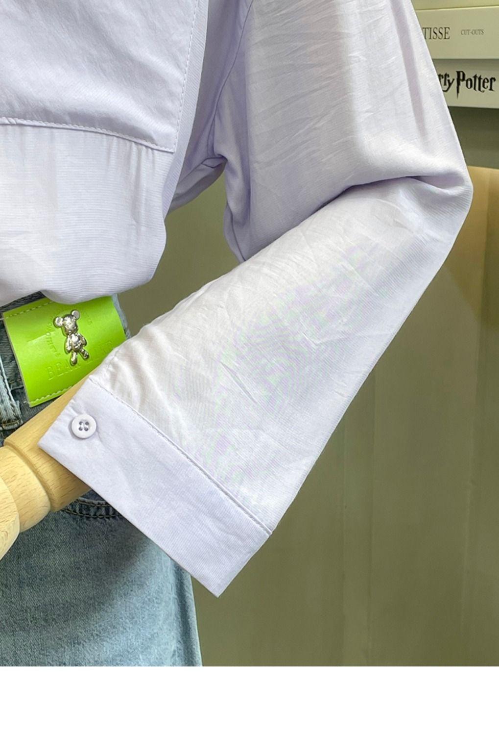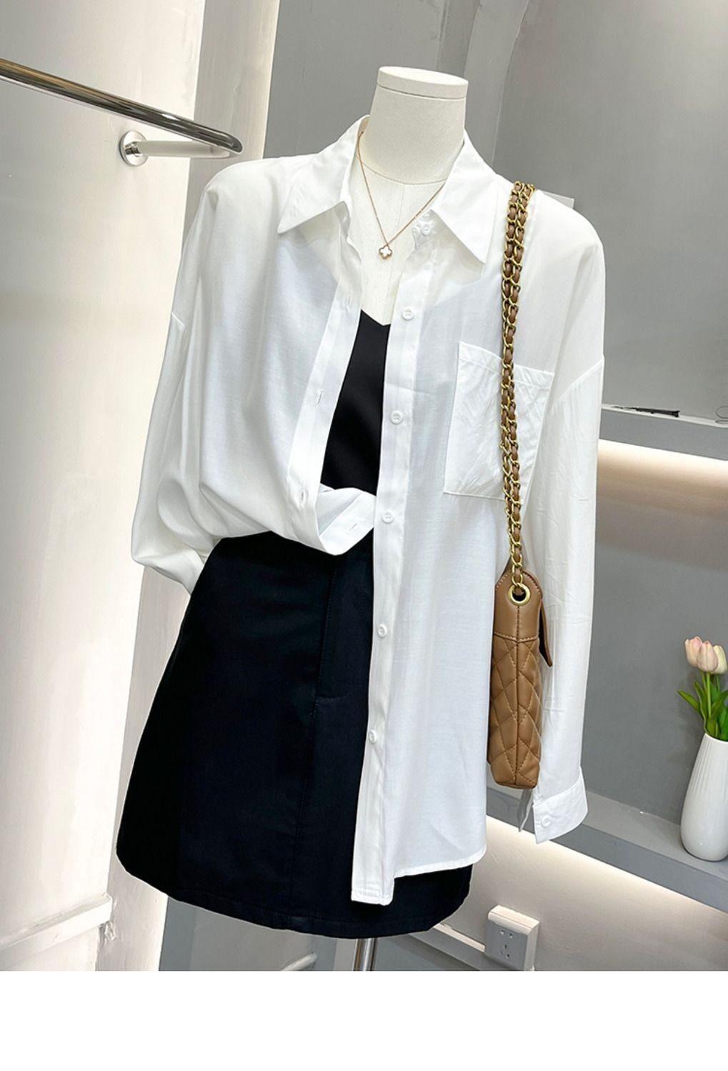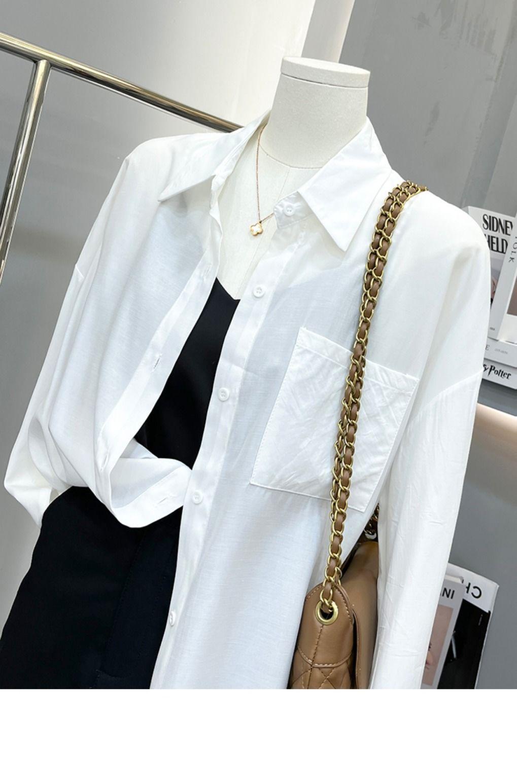 Camisas de Cor Sólida para Mulheres para Primavera e Outono, Jaquetas Soltas de Manga Comprida Estilo Hong Kong, Camisas de Nicho em Camadas, Camisas de Celebridade da Internet com Temperamento Elegante