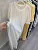Camisa Tricotada de Verão Vazada para Mulheres 2025 Novo Estilo Coreano Solta Longa Fenda Gola Redonda Fina Proteção Solar Blusa Saia Moderna
