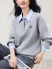 Top Listrado com Costura Falsa Duas Peças Manga Longa Moderno 2025 Novo Camisa Universitária Gola Solta Casual Suéteres Femininos