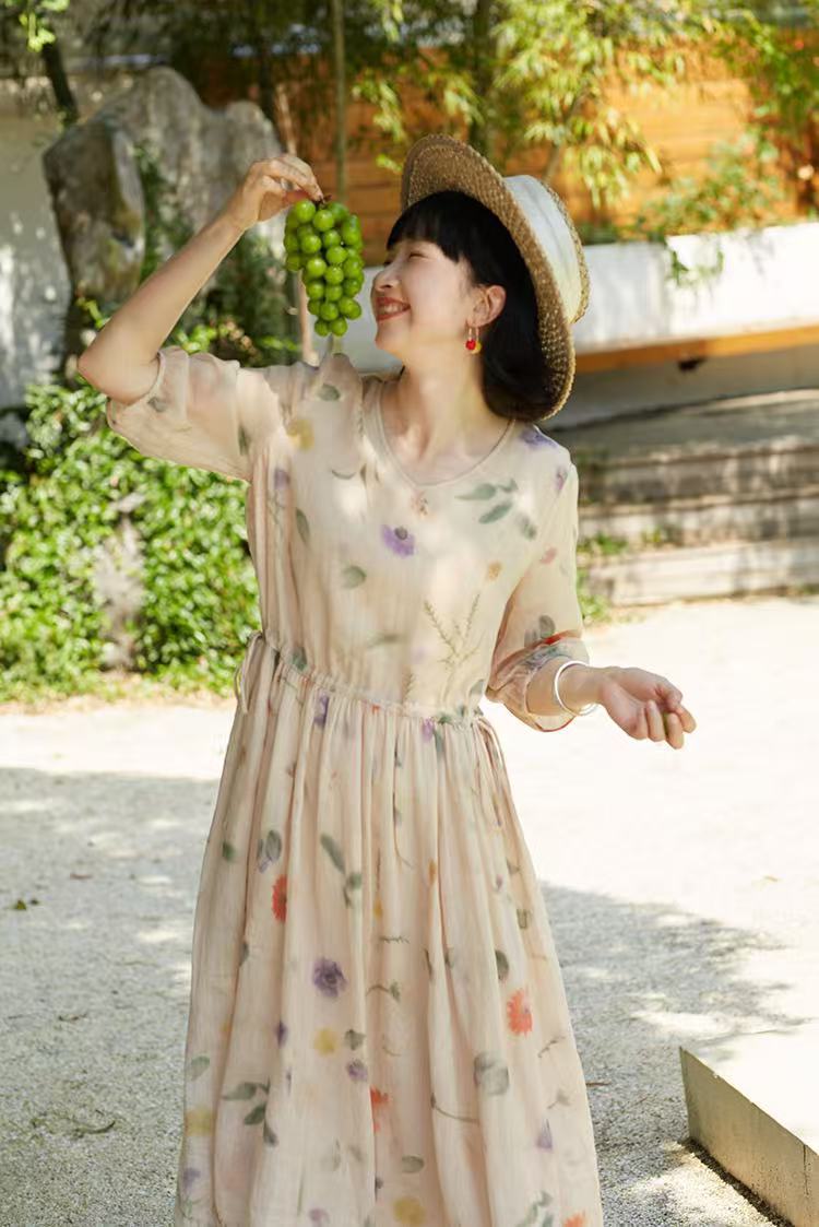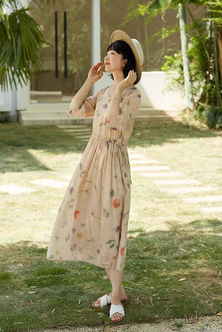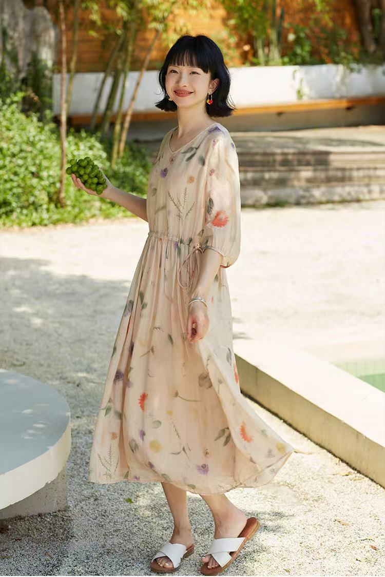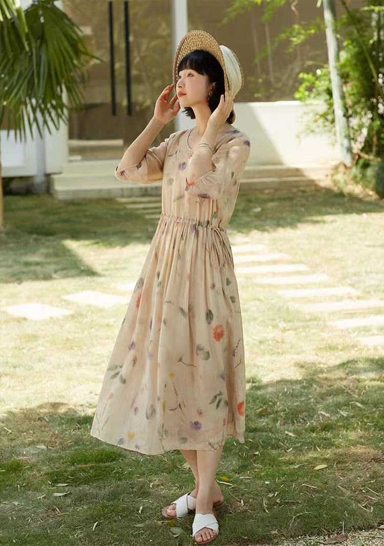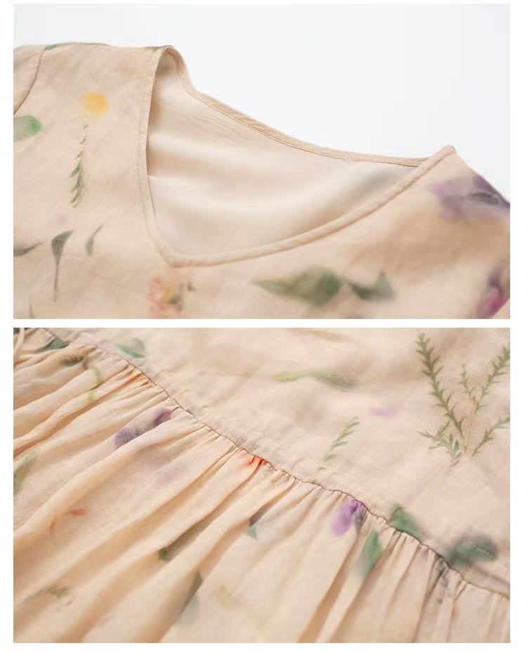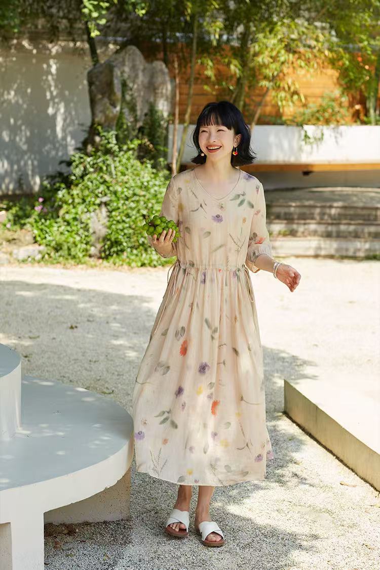 Vestido Midi Estampado com Decote V Novo Estilo Resort Primavera/Verão 2025