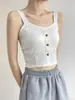 Colete curto feminino com enchimento no peito, fio de algodão, roupa externa, sem mangas francesas, alça de umbigo, base interna slim fit, top para o verão