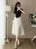 Vestido Decote V Estilo Francês para Mulheres, Verão 2026, com Senso de Design, Patchwork de Renda, Ajuste na Cintura, Emagrecimento, Alto Padrão e Estiloso