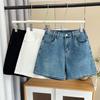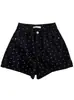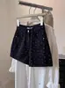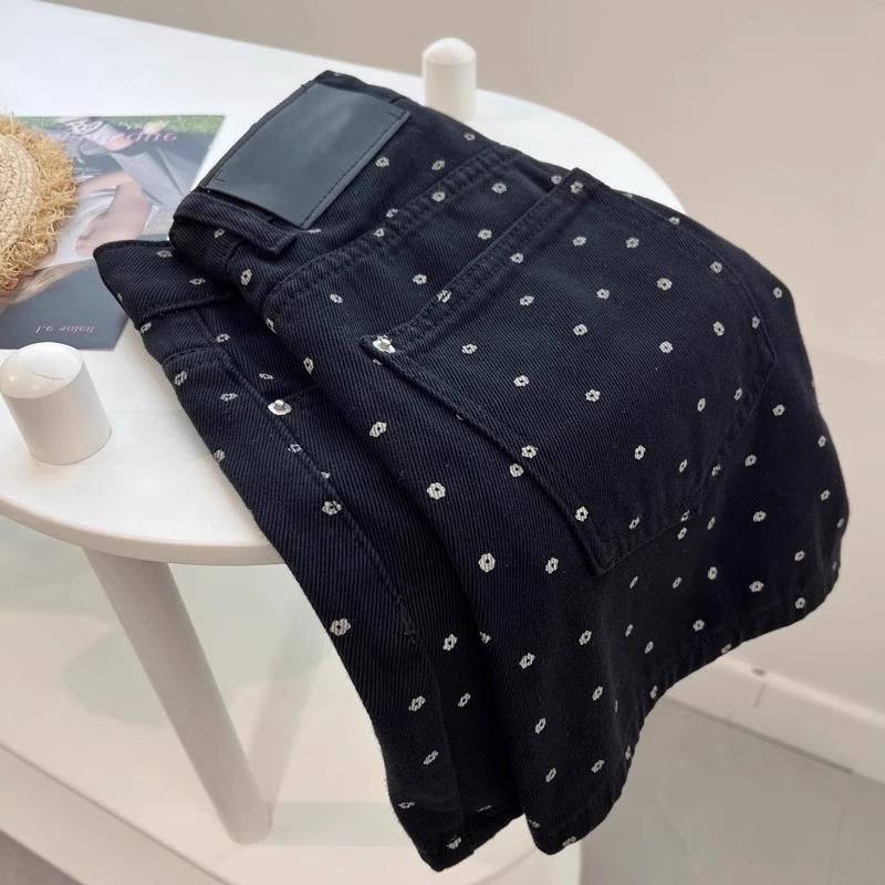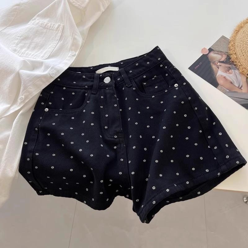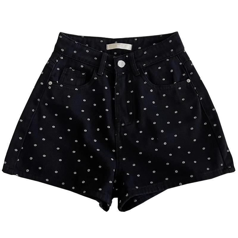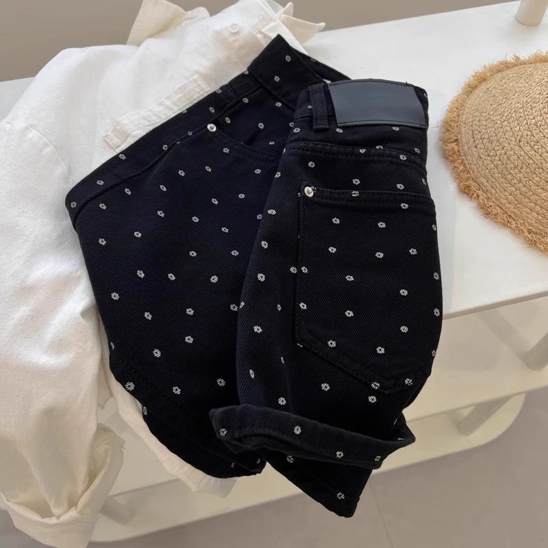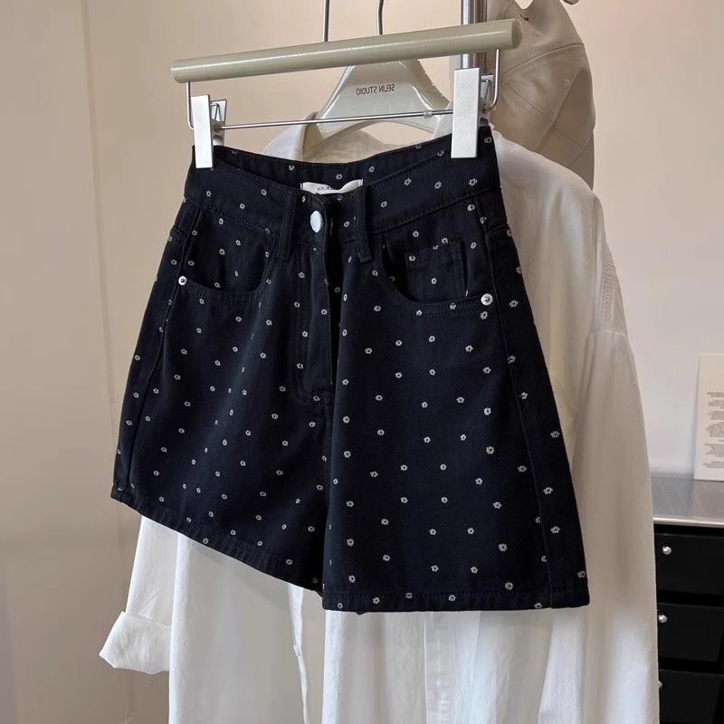 Item Popular Recomendado~ Shorts Jeans Femininos Florais de Bolinhas Pretos, Verão Cintura Alta Emagrecedores A-Line Casuais Hot Pants