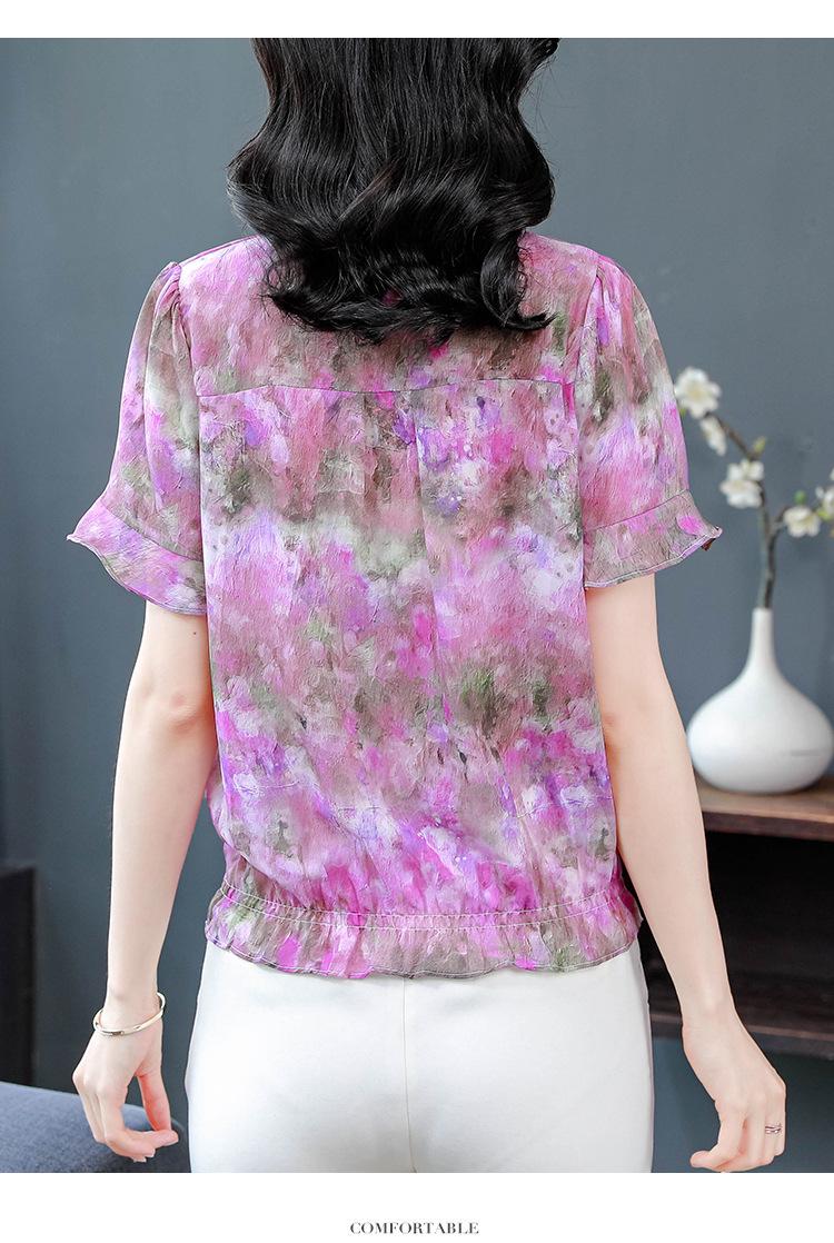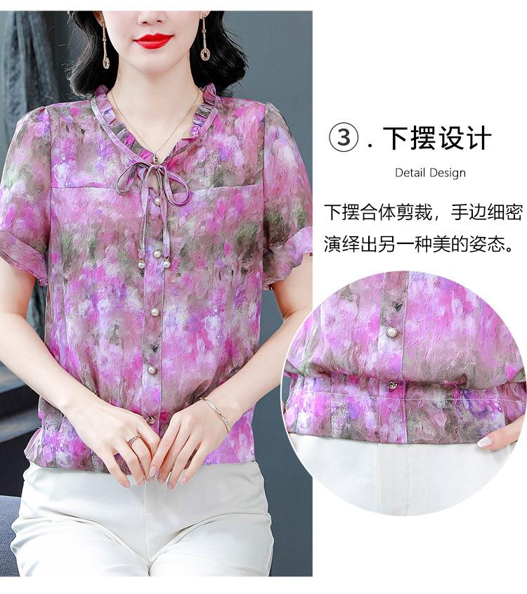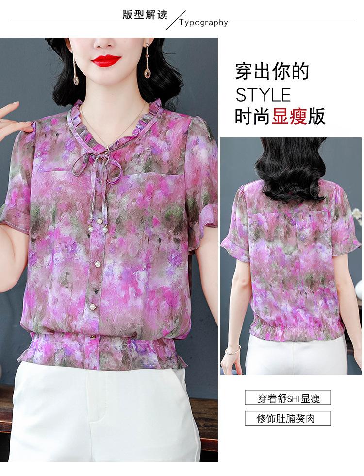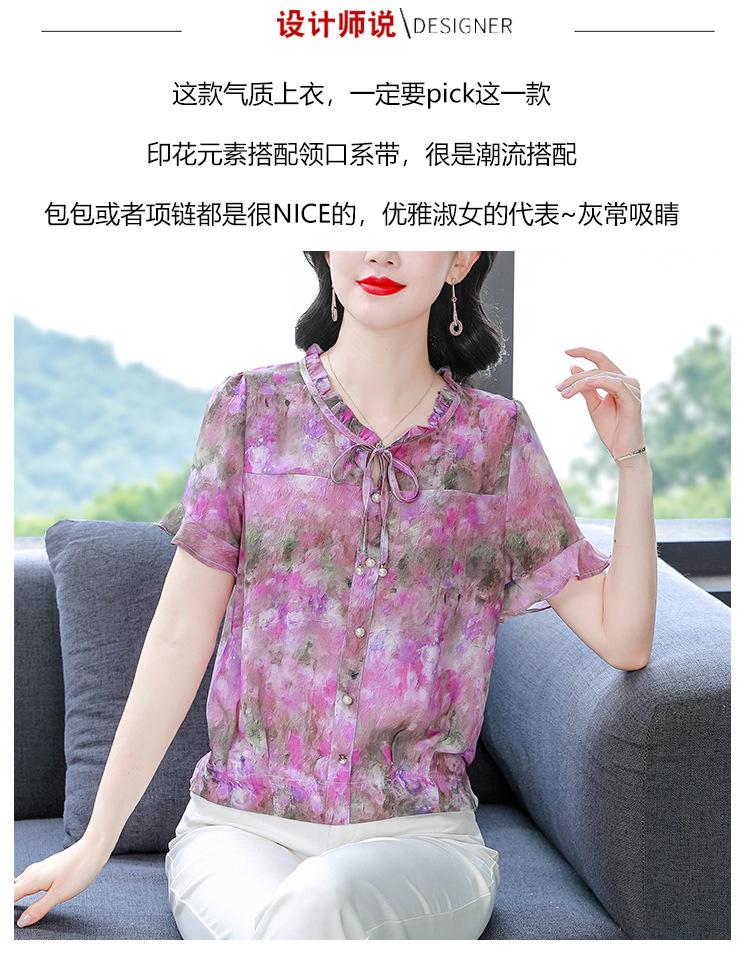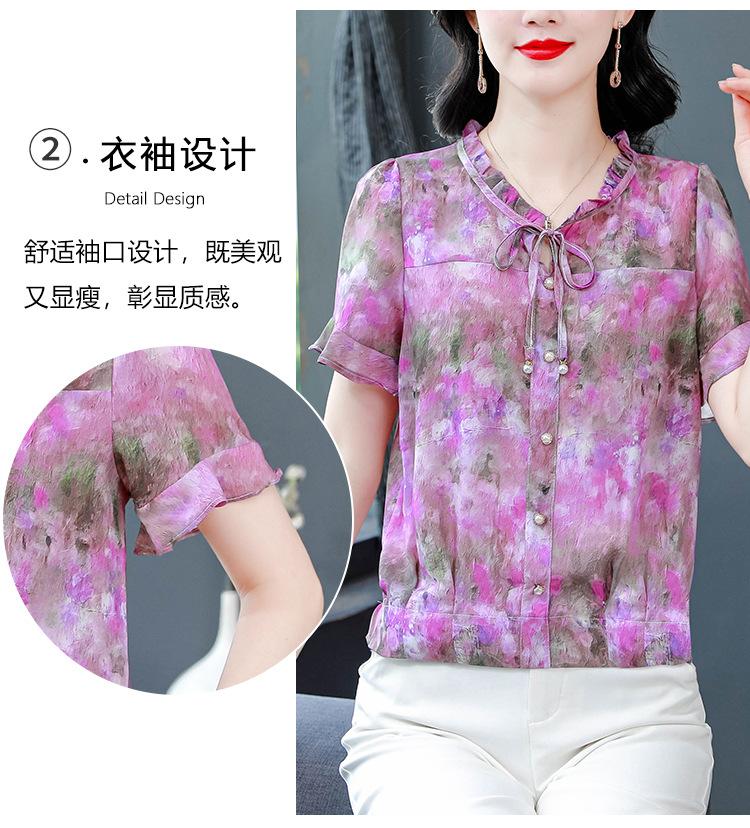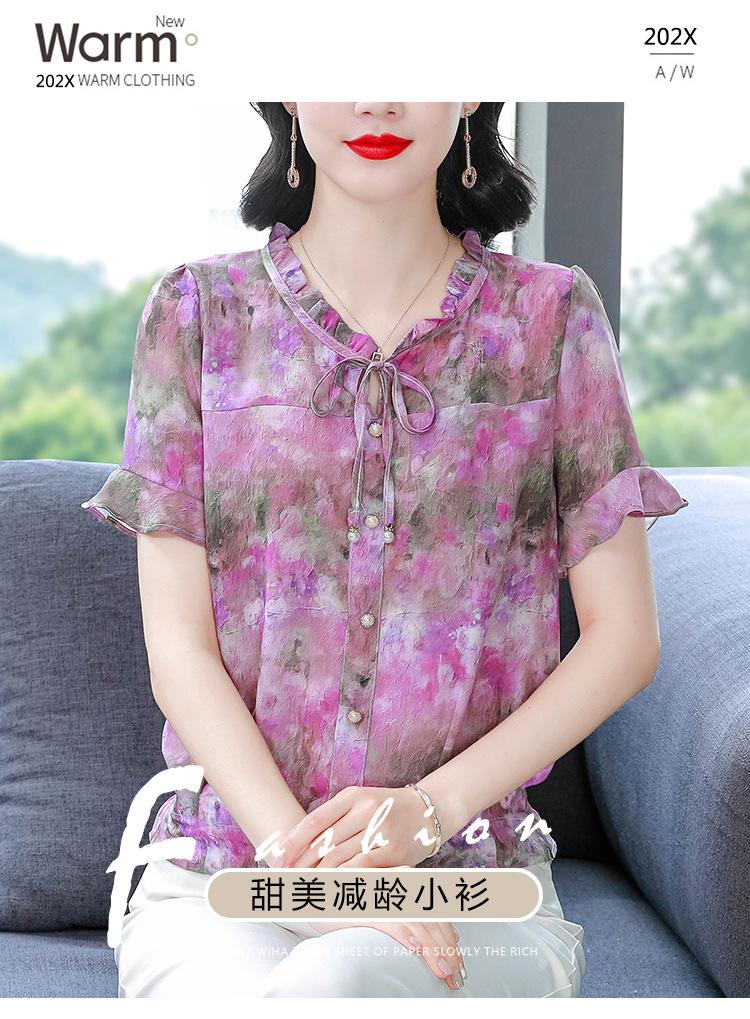 2025 Novo Verão Roupa de Mãe Blusas Soltas de Manga Curta Roupas de Verão Moda Feminina Versátil Camisas de Chiffon Florais