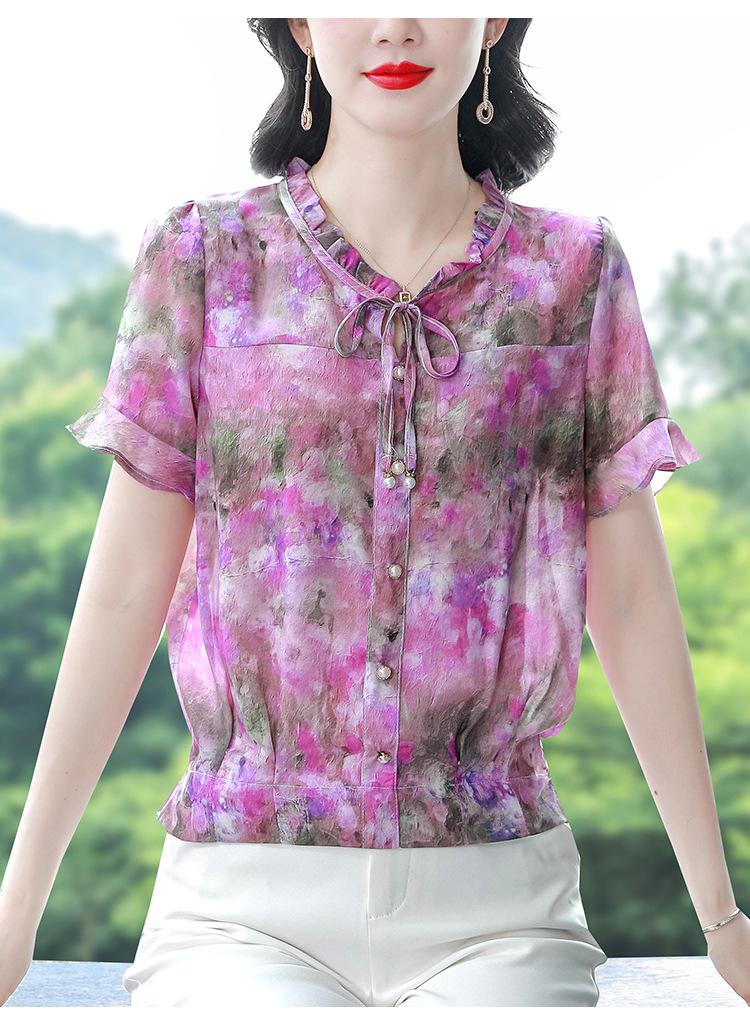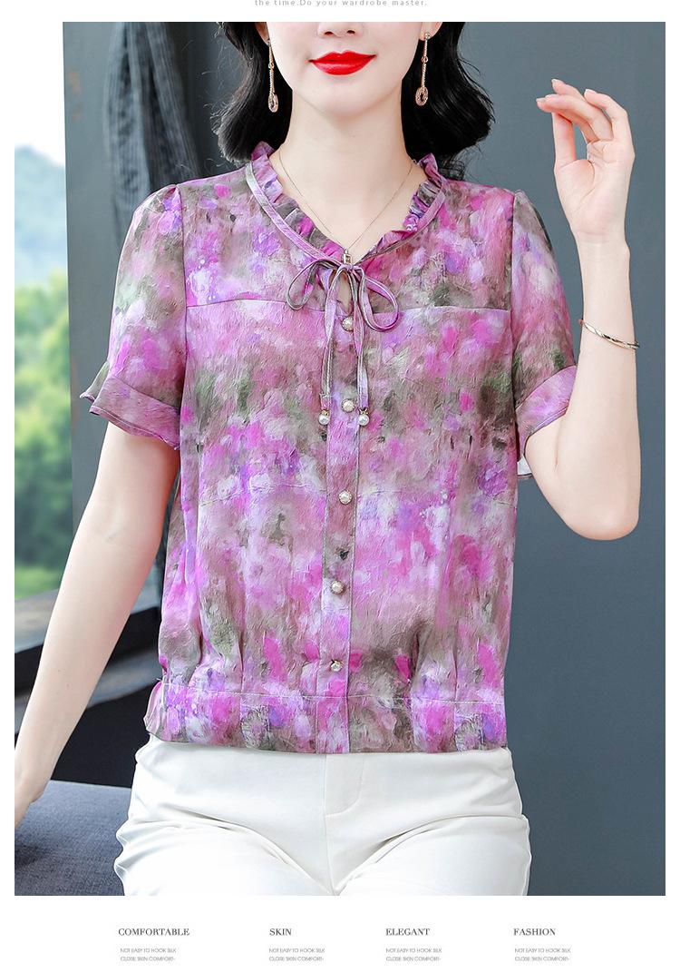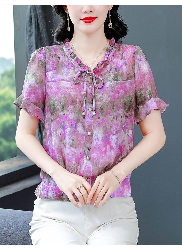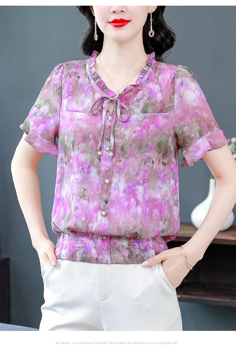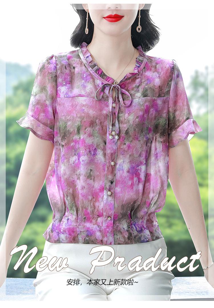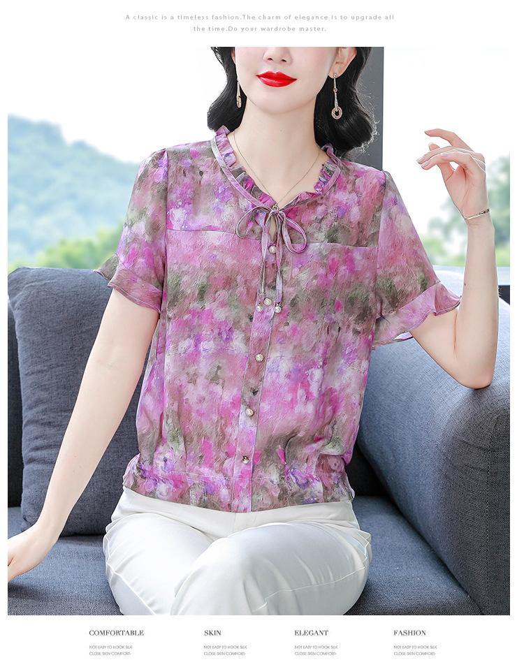 2025 Novo Verão Roupa de Mãe Blusas Soltas de Manga Curta Roupas de Verão Moda Feminina Versátil Camisas de Chiffon Florais