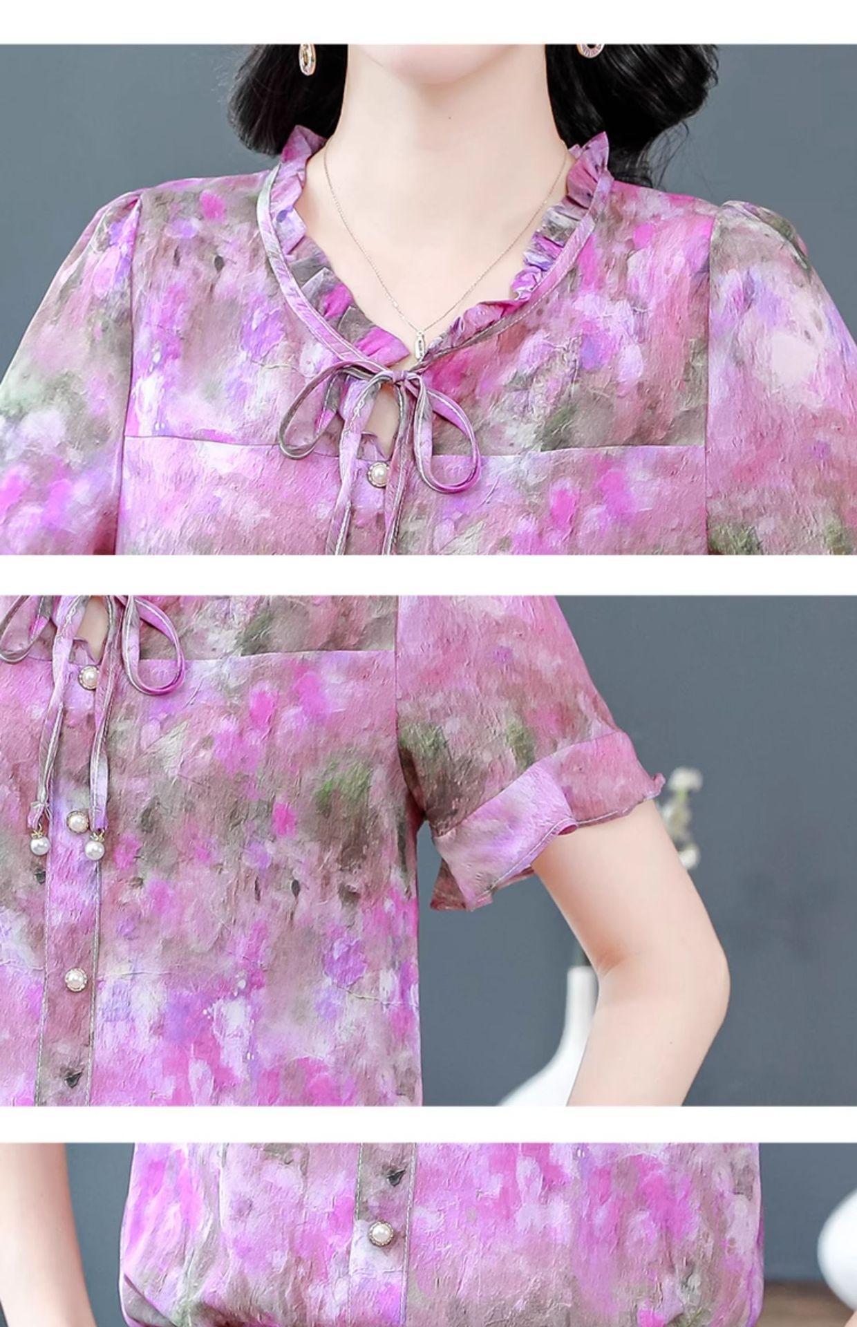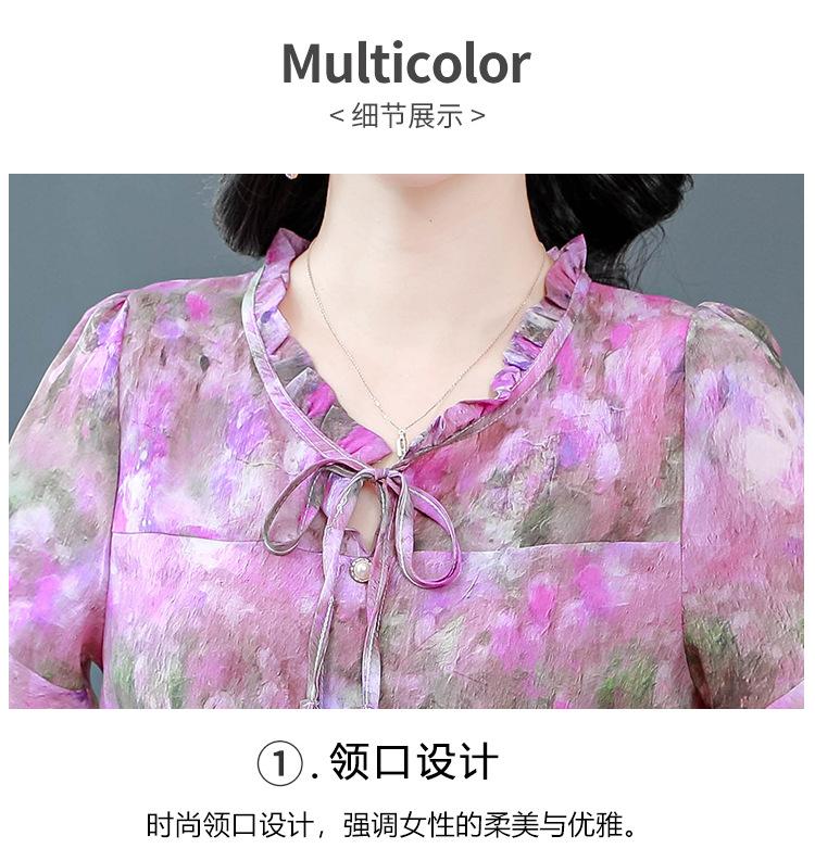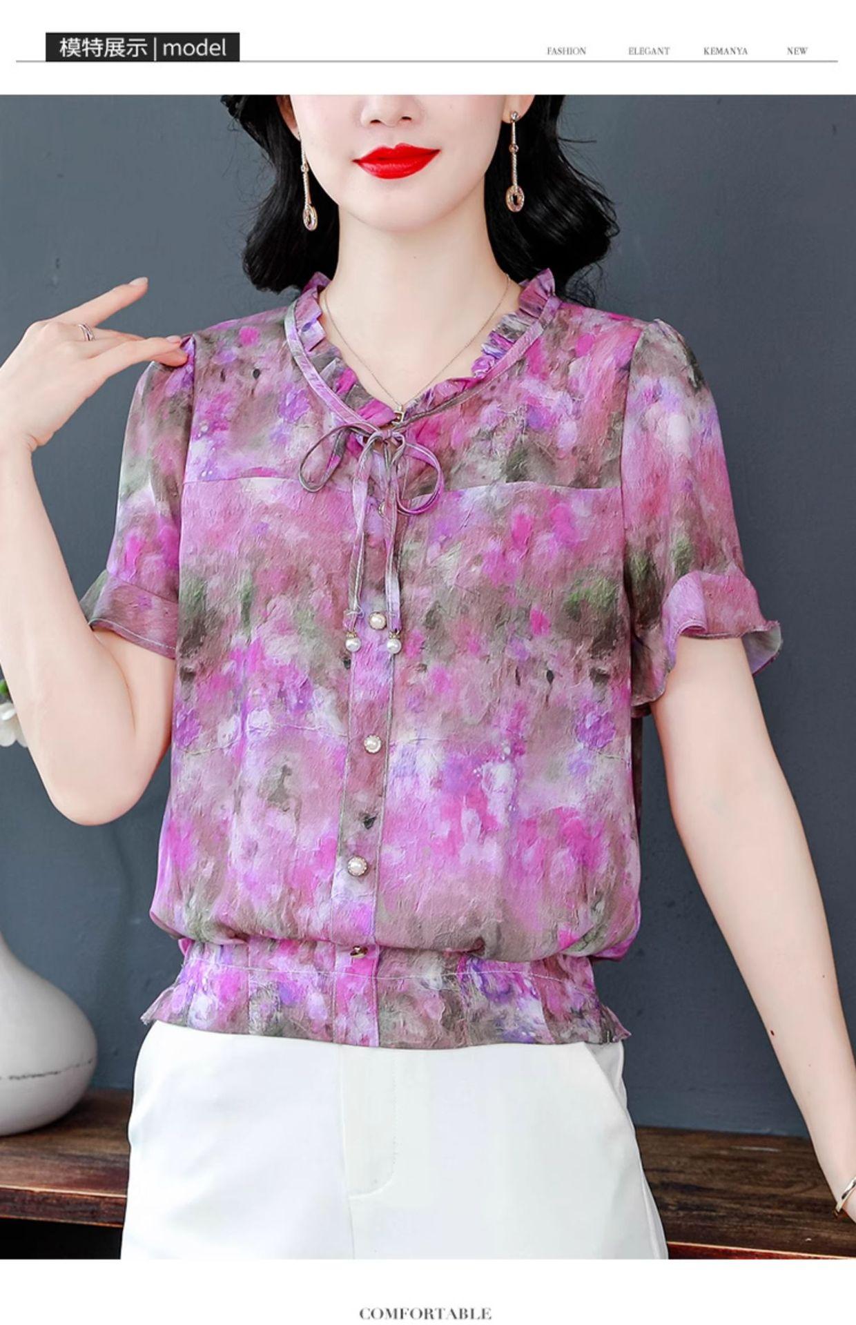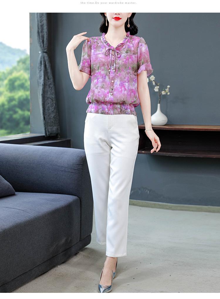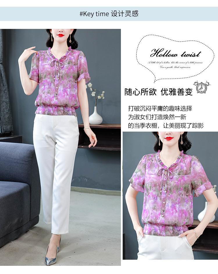 2025 Novo Verão Roupa de Mãe Blusas Soltas de Manga Curta Roupas de Verão Moda Feminina Versátil Camisas de Chiffon Florais