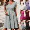 Europeu e Americano Transfronteiriço 2025 Amazon Verão Novo Vestido Feminino Decote V Botão Cintura Elástica Manga Curta para Mulheres