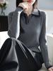 2025 Primavera e Outono Novo Suéter de Lã Penteada com Gola Polo Feminino Lapela Suéter Slim Camisa Básica Tricotada Top Interno