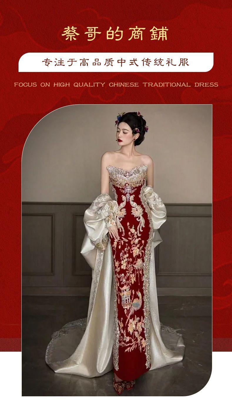 Vestido Xiuhe Vestido de Noiva Noiva Vestido de Casamento Luxo 2025 Novo Cheongsam Estilo Chinês Vestido de Brinde Emagrecimento Vestido de Banquete