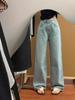 Jeans Pesados com Hot Drilling Femininos Novo Início da Primavera plus size Corpo Pera Pequeno Solto Emagrecendo Perna Reta Calças de Perna Larga