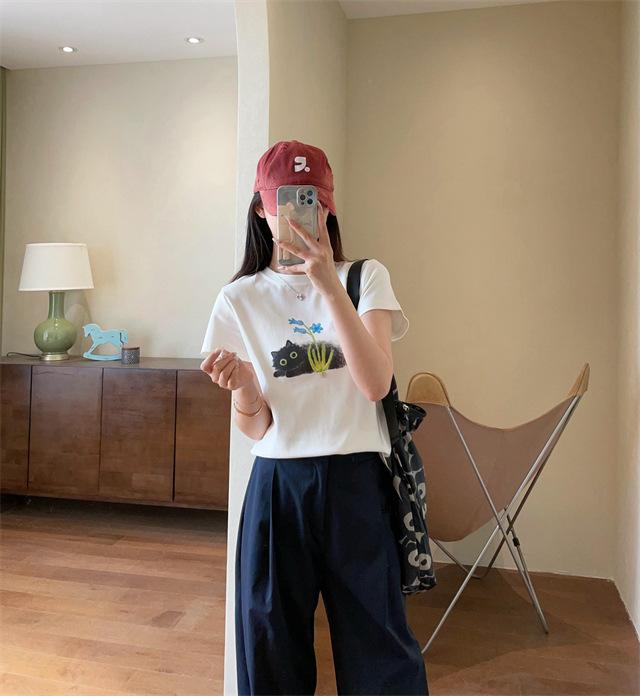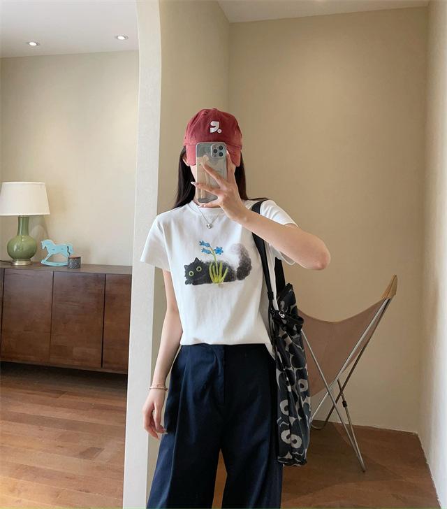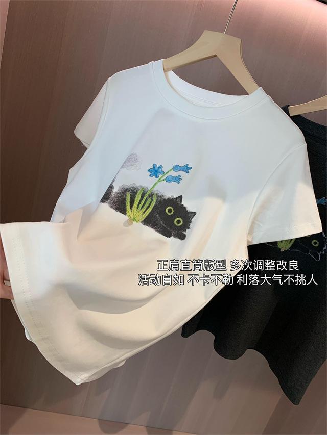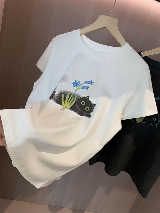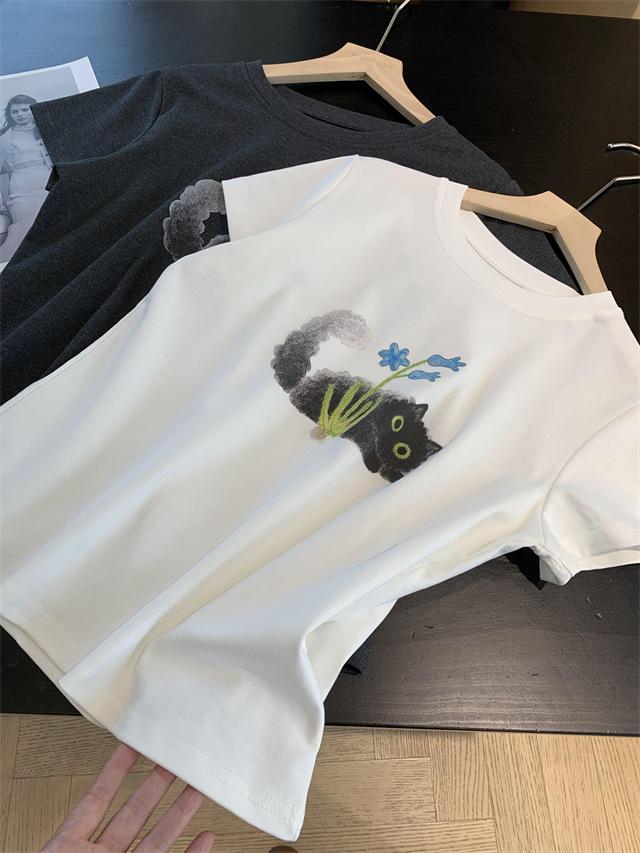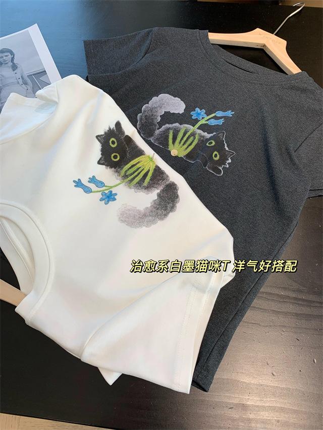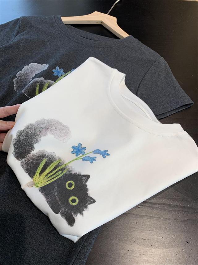 A adorável camiseta de manga curta gatinho em tinta branca chegou! Eu a amei assim que recebi a amostra!