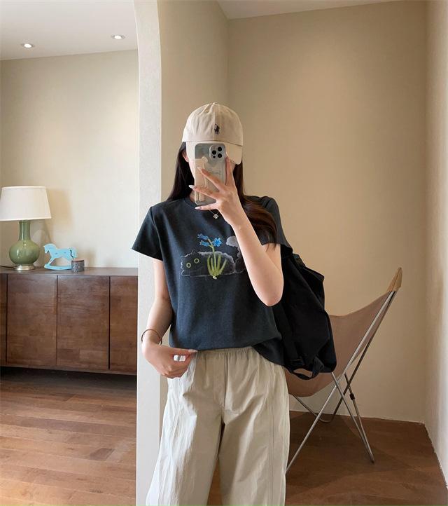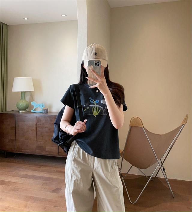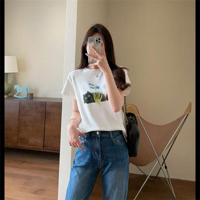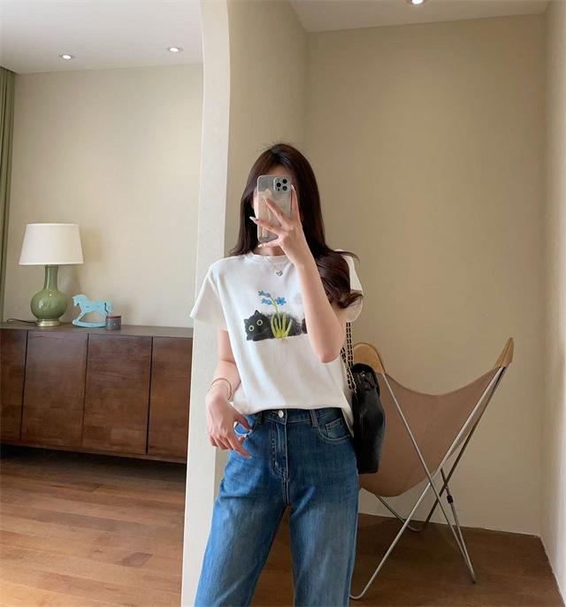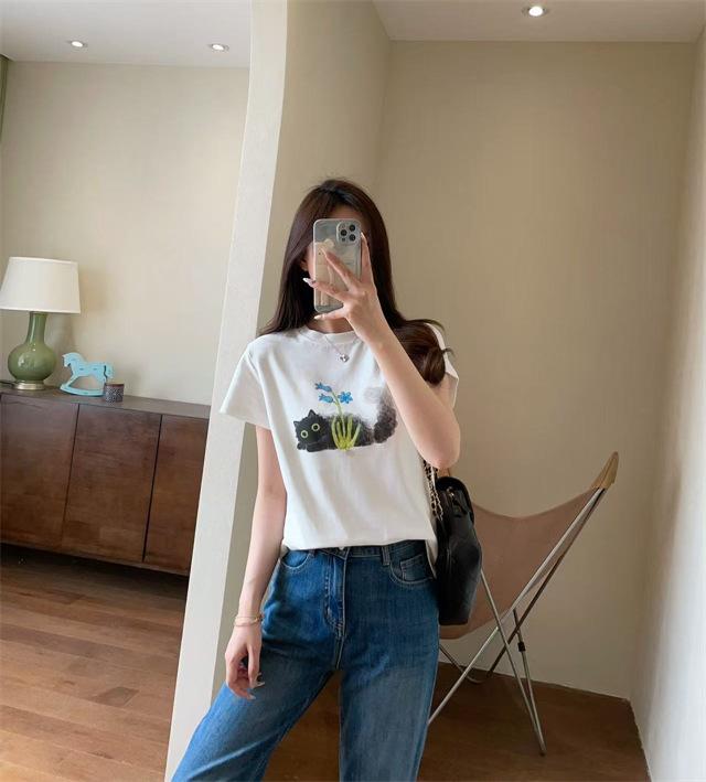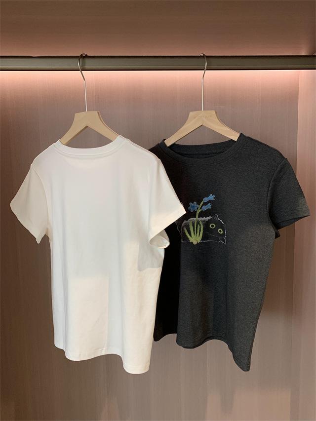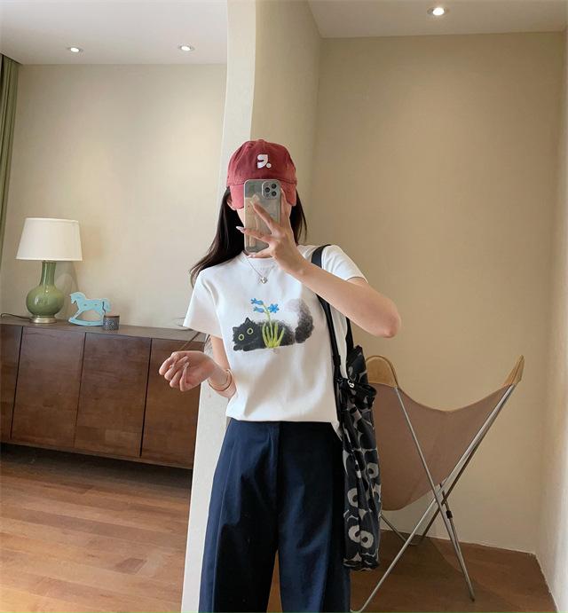 A adorável camiseta de manga curta gatinho em tinta branca chegou! Eu a amei assim que recebi a amostra!