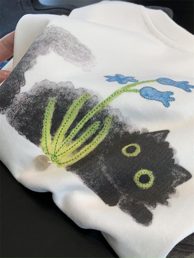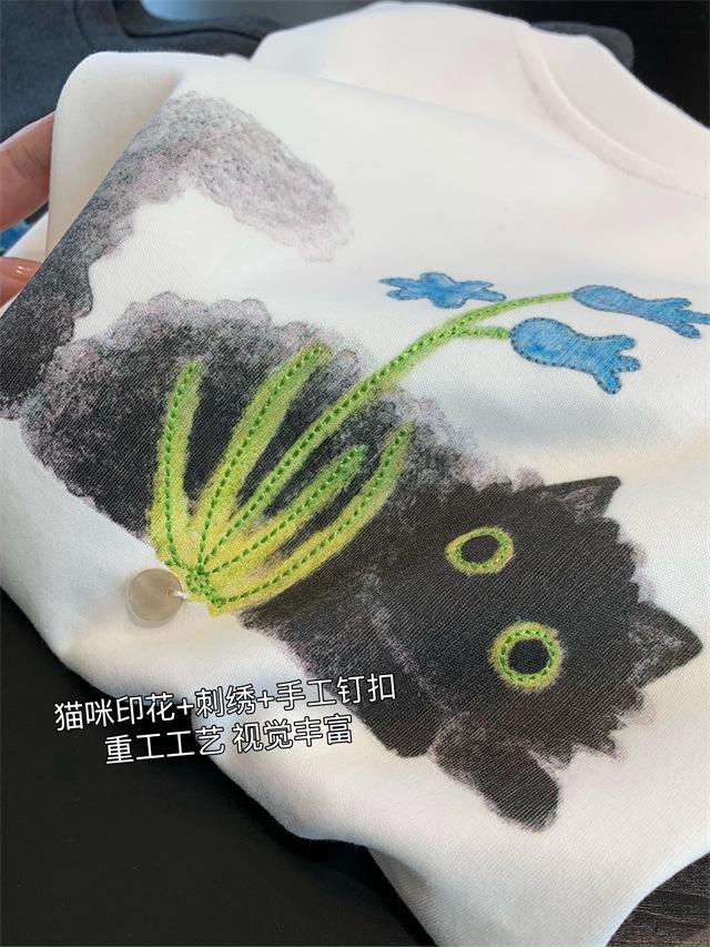 Brilho encantador, estampa de gato tridimensional e nítida, juvenil e enérgica,