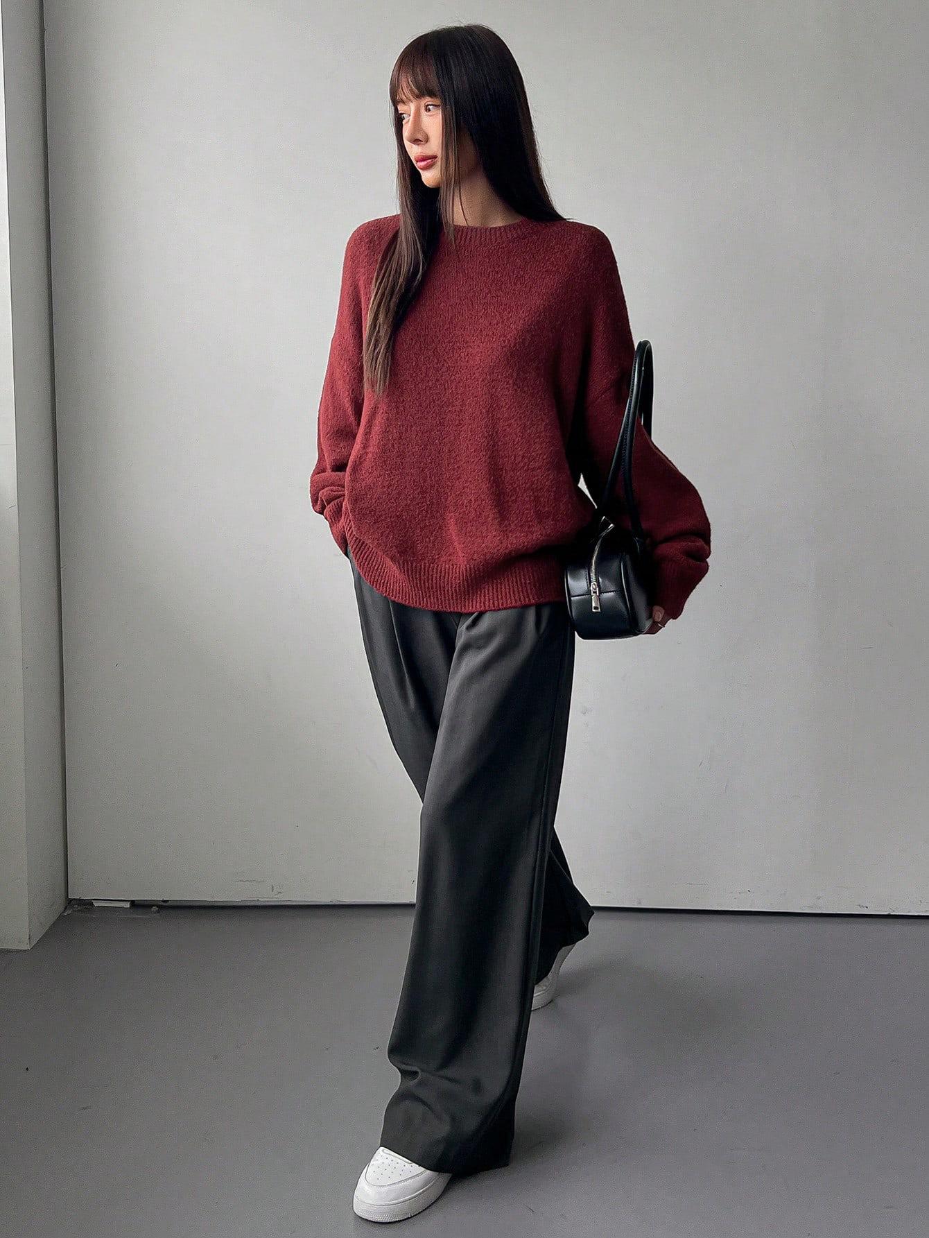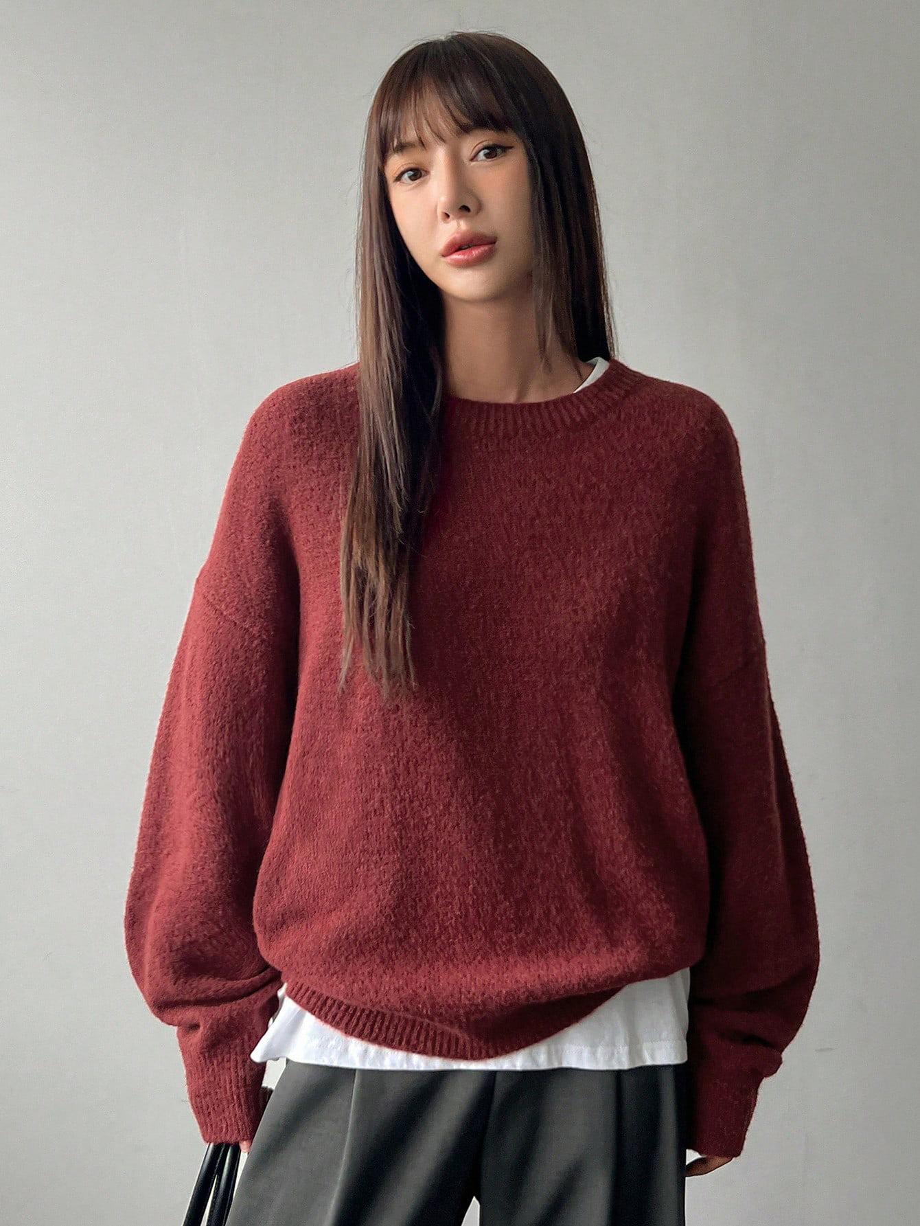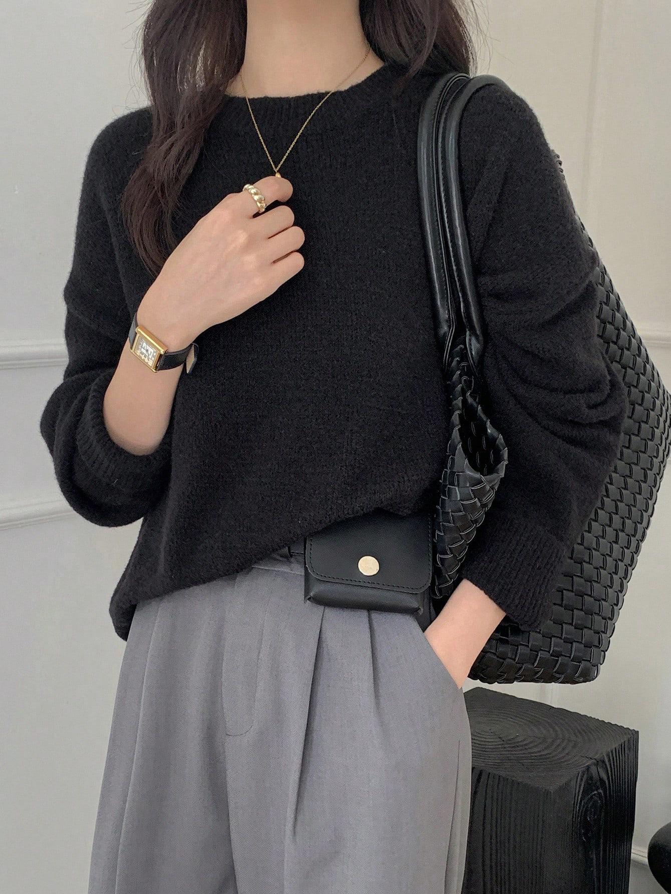 Tricô Simples Pulôver Estilo Coreano Gola Redonda Tricô Novo Outono e Inverno Solto Versátil Estilo Preguiçoso Cor Pura Top da Moda