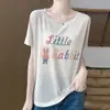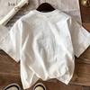 2025 Nova Camiseta Personalizada Street Fashion Europeia e Americana Cross-Border de Comprimento Médio com Ombro Caído e Manga Curta Solta