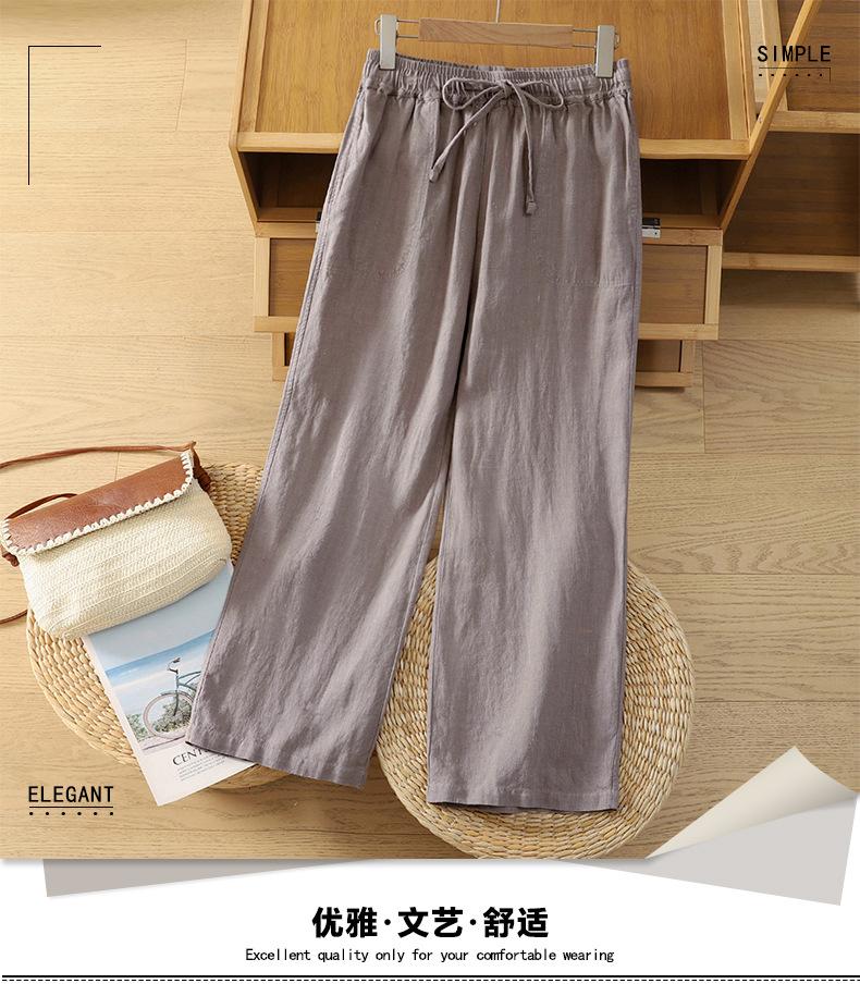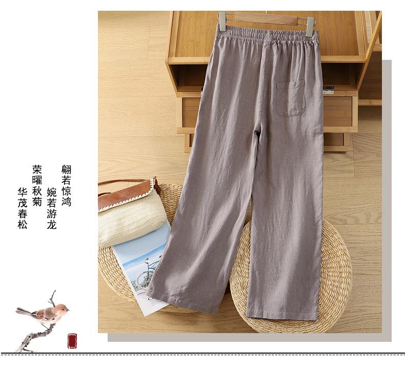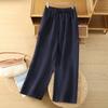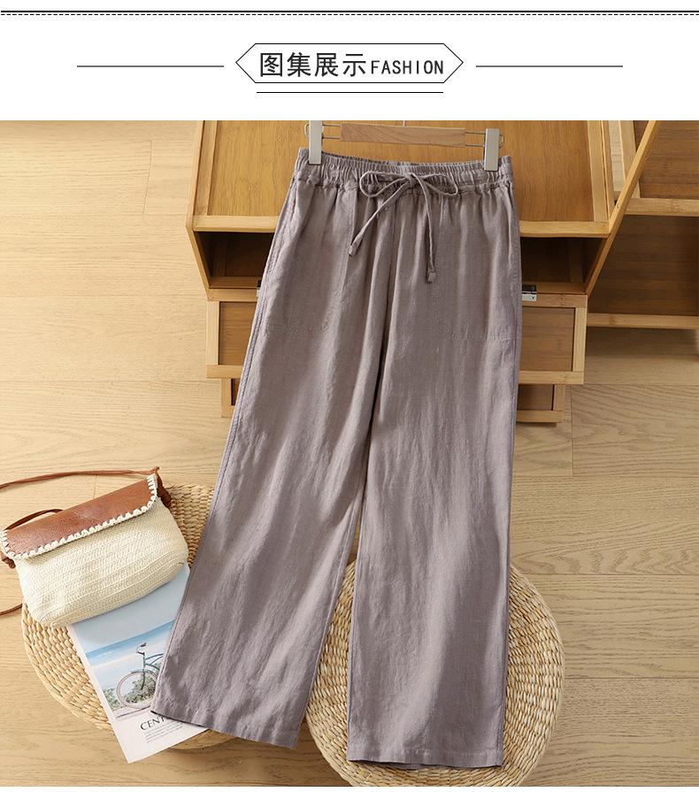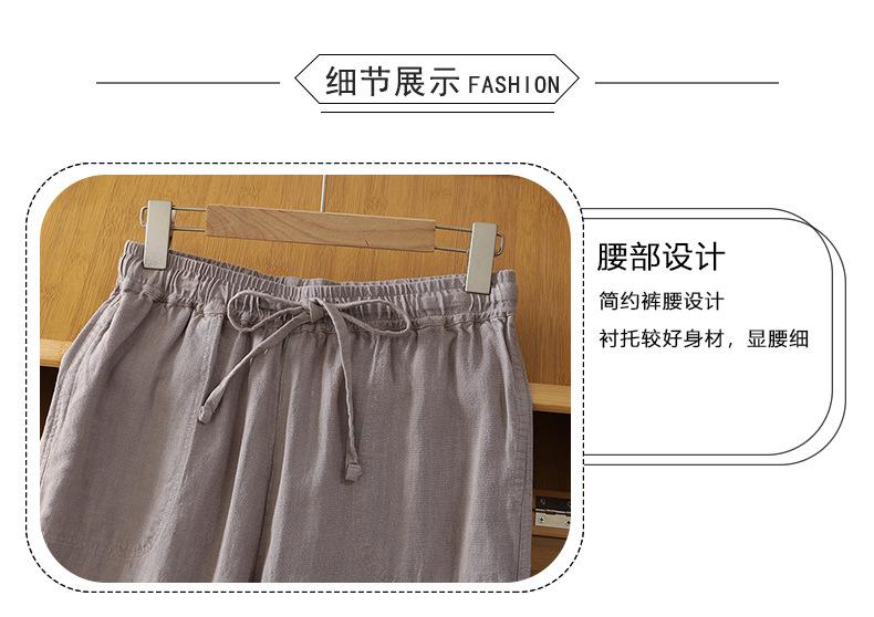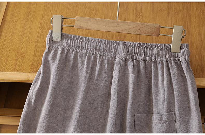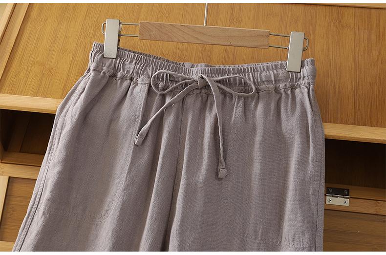 Fotos Reais de Calças Pantacourt de Algodão e Linho para Mulheres 2025 com Cintura Elástica e Calças Casuais Soltas para Mulheres no Verão