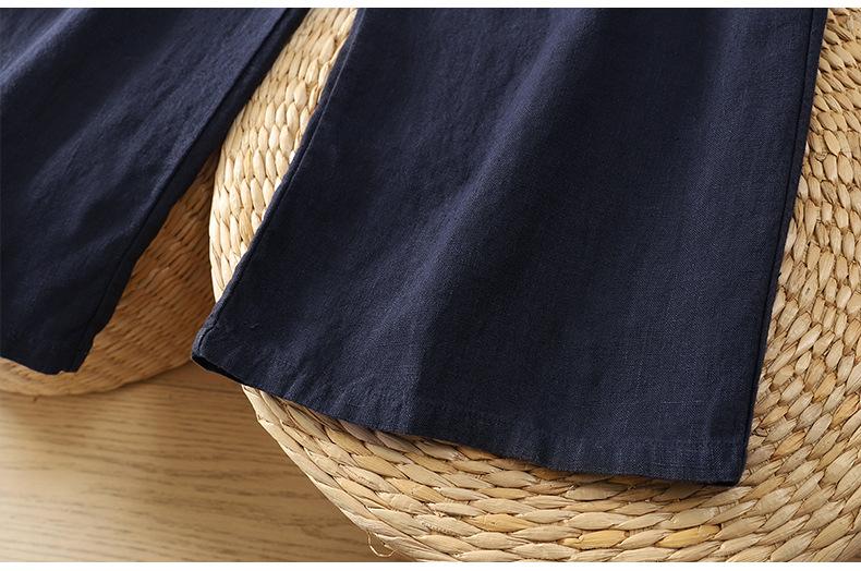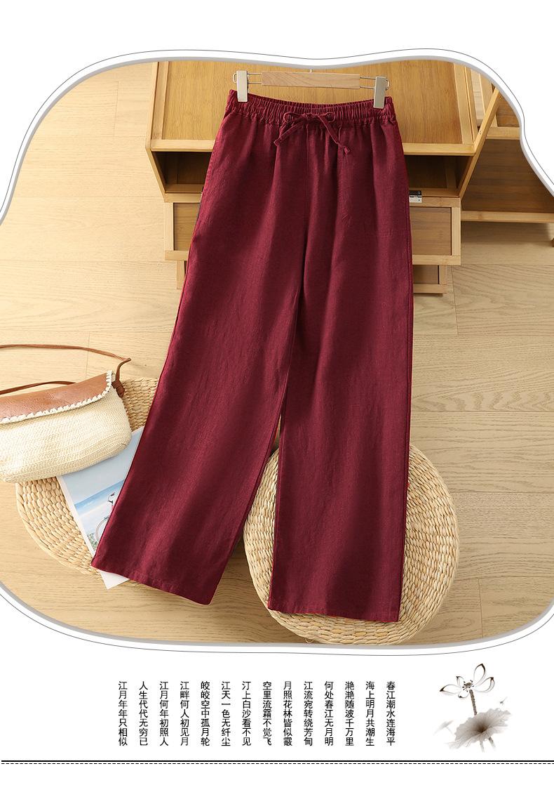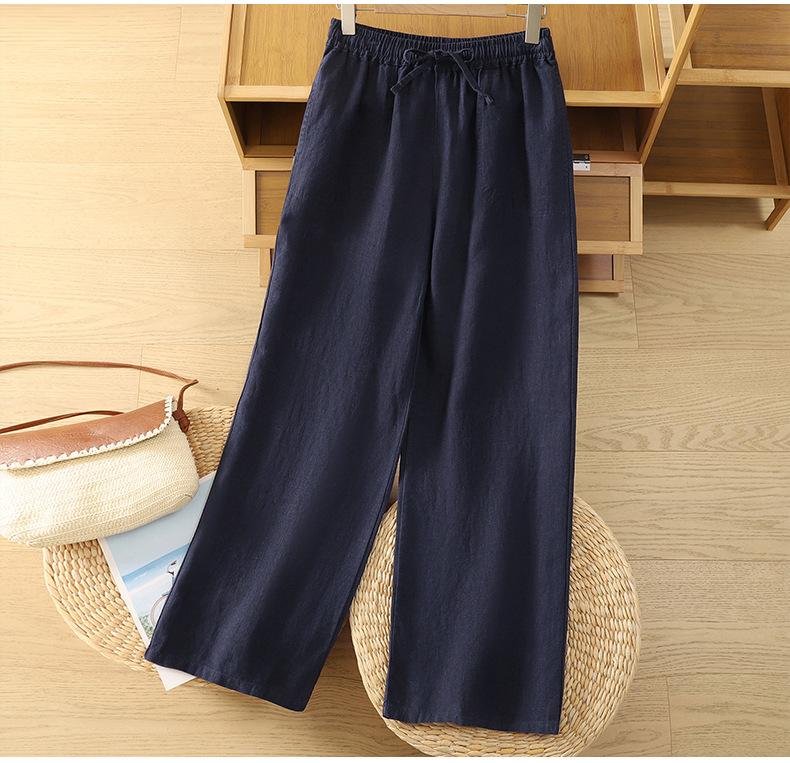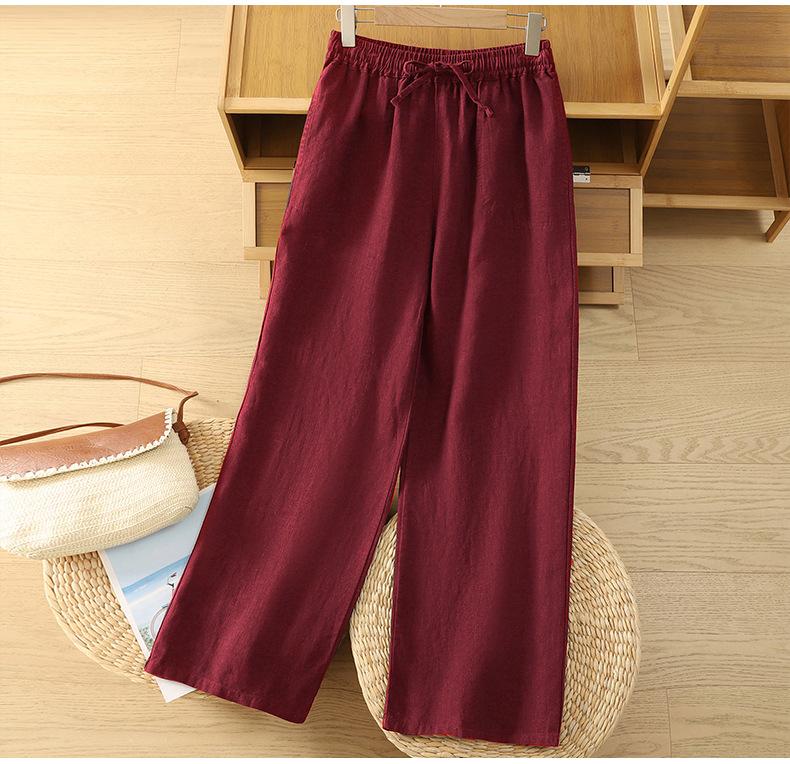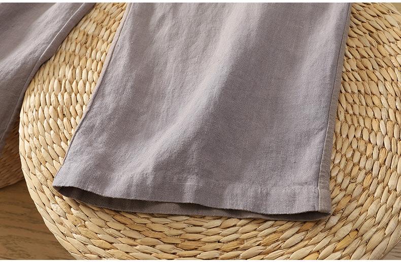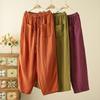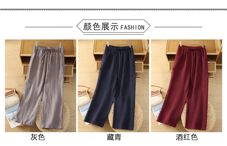 Fotos Reais de Calças Pantacourt de Algodão e Linho para Mulheres 2025 com Cintura Elástica e Calças Casuais Soltas para Mulheres no Verão