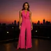 Verão 2025 Moda Europeia e Americana Feminina Cor Sólida Textura Cetim de Seda Pendurado Costas Nuas Sem Mangas Calças de Perna Larga